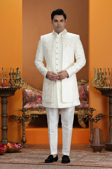 Art Silk Fabric Cream Readymade Indo Western For Wedding Wear