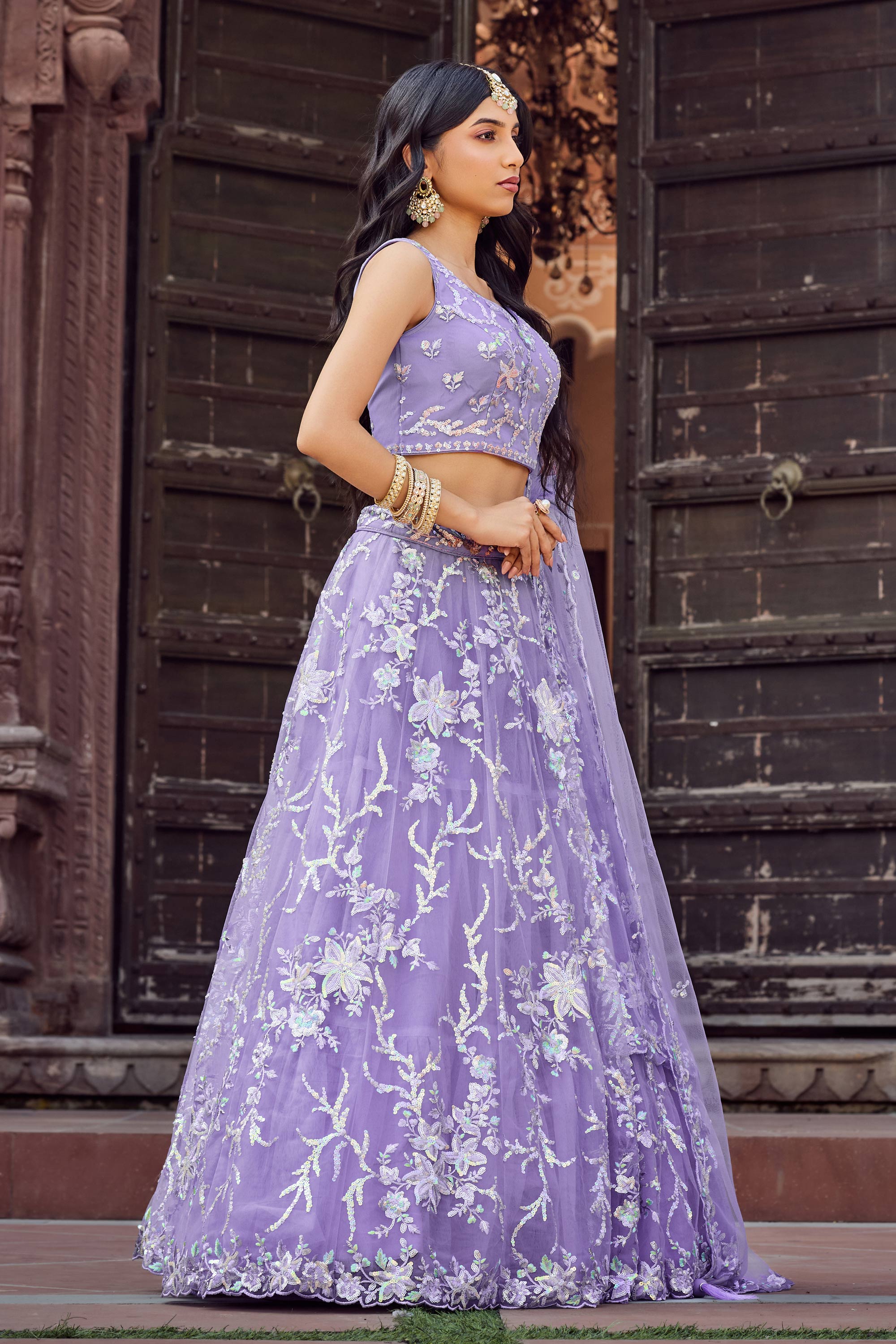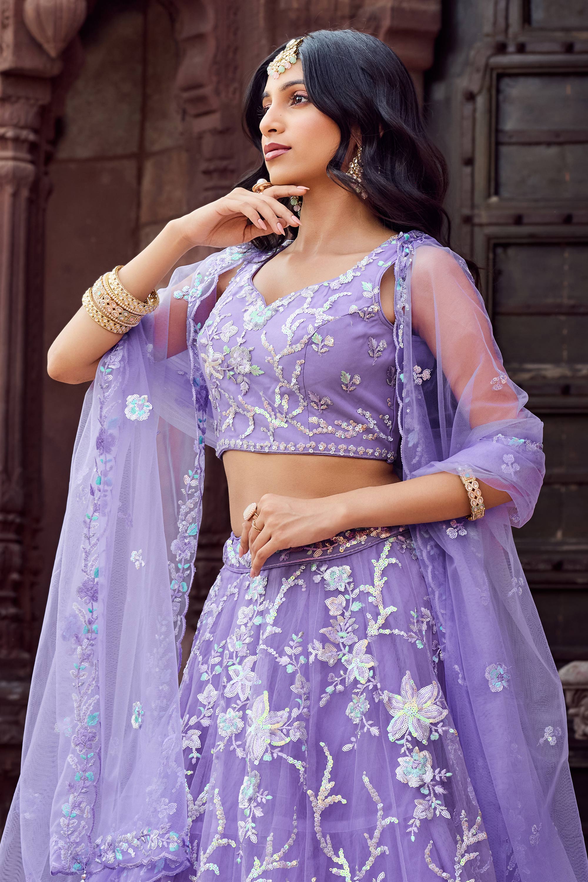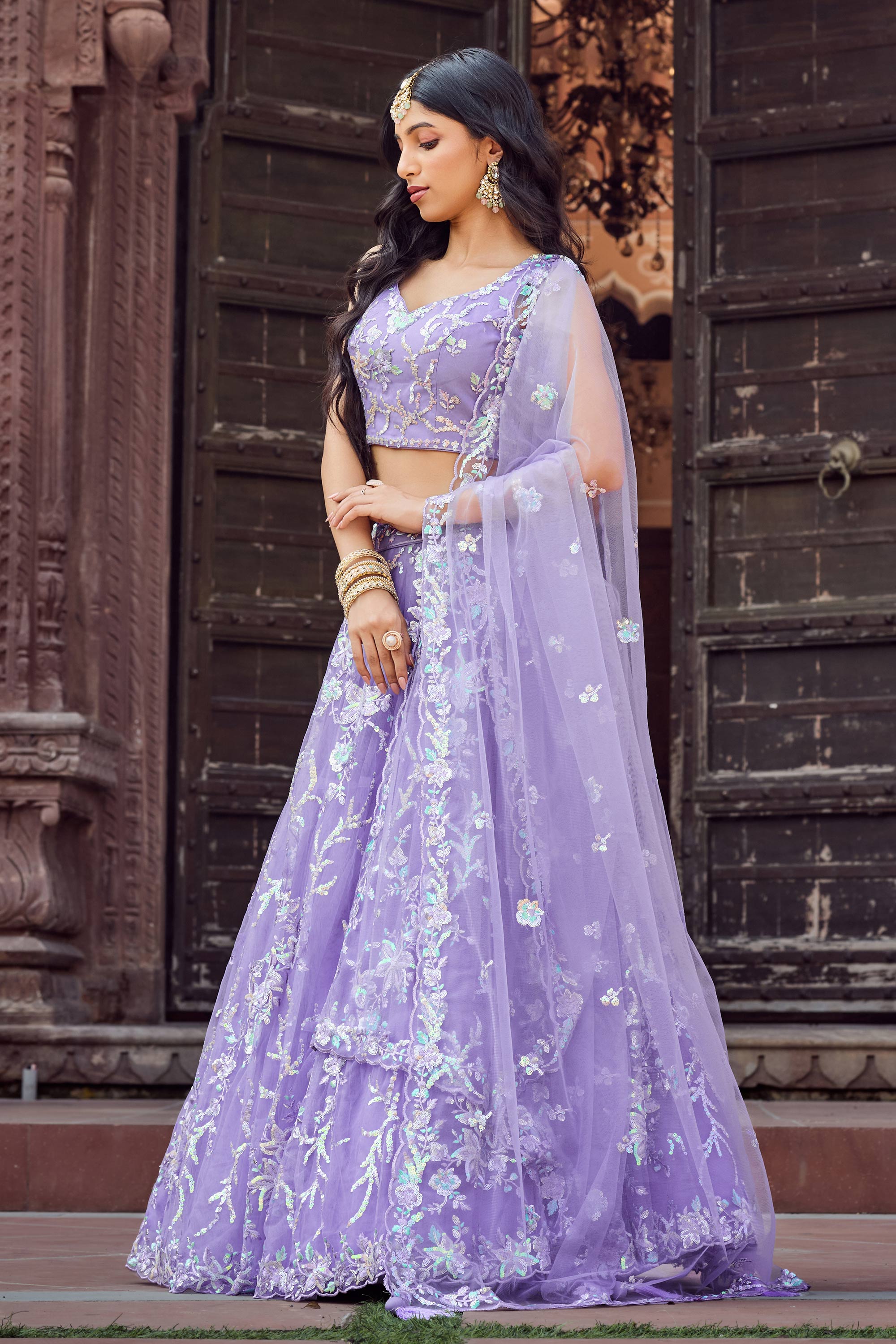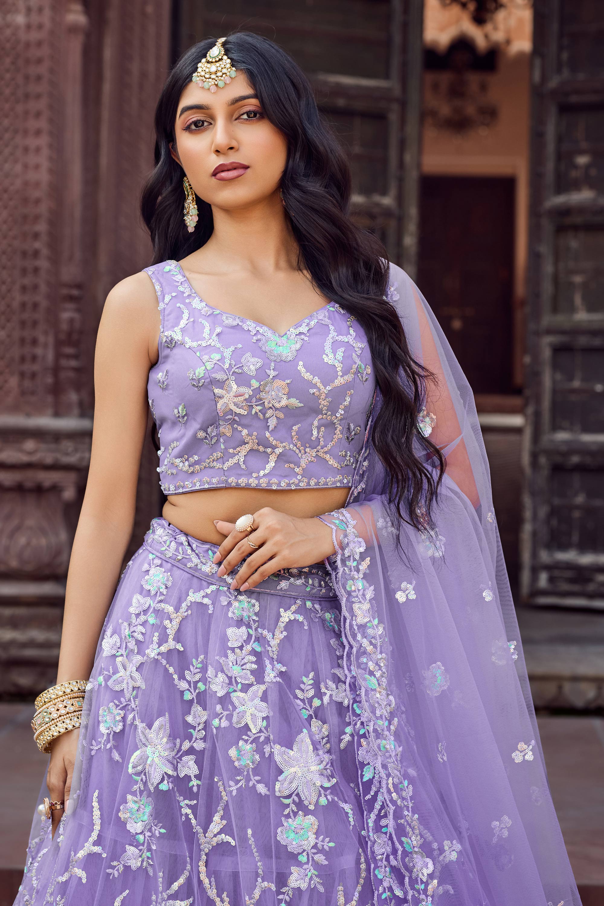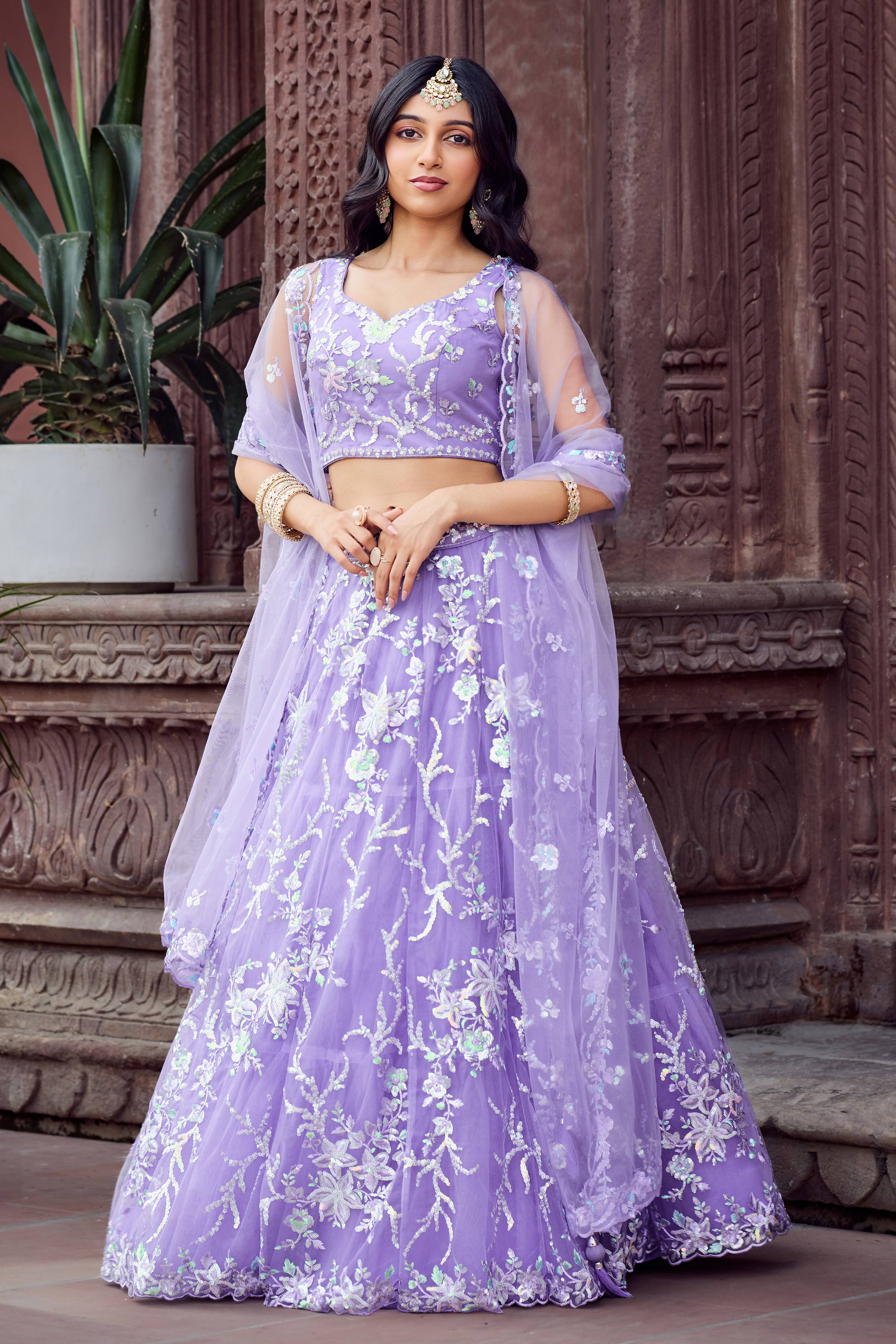 Turn heads with this gorgeous color net fabric lehenga featuring intricate sequins embroidery for a dazzling finish. Ideal for wedding functions or celebratory events, this semi stitched lehenga can be easily tailored to your fit. The included unstitched blouse offers endless styling possibilities, while the complementing dupatta adds a touch of charm and sophistication. Designed with quality and attention to detail, this outfit provides the perfect combination of grace and style. Step out confidently in this ensemble and be the center of attention on every occasion.