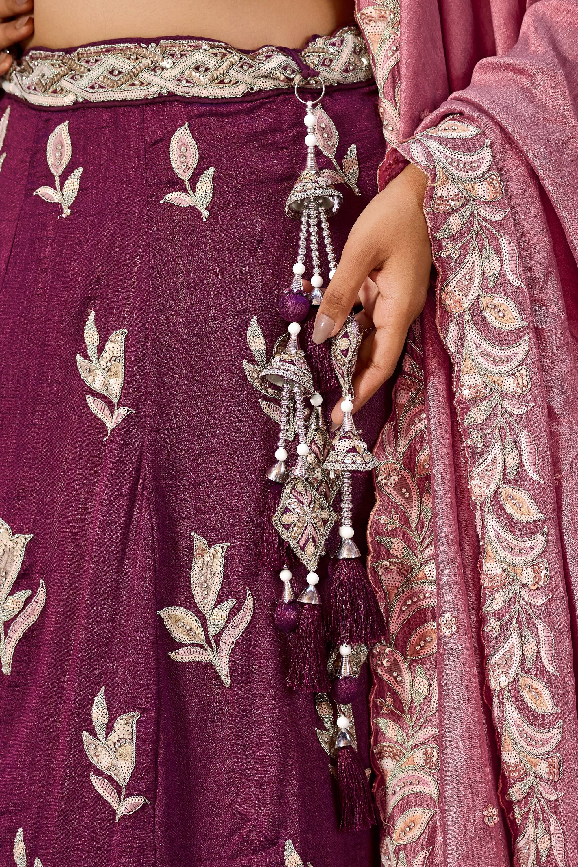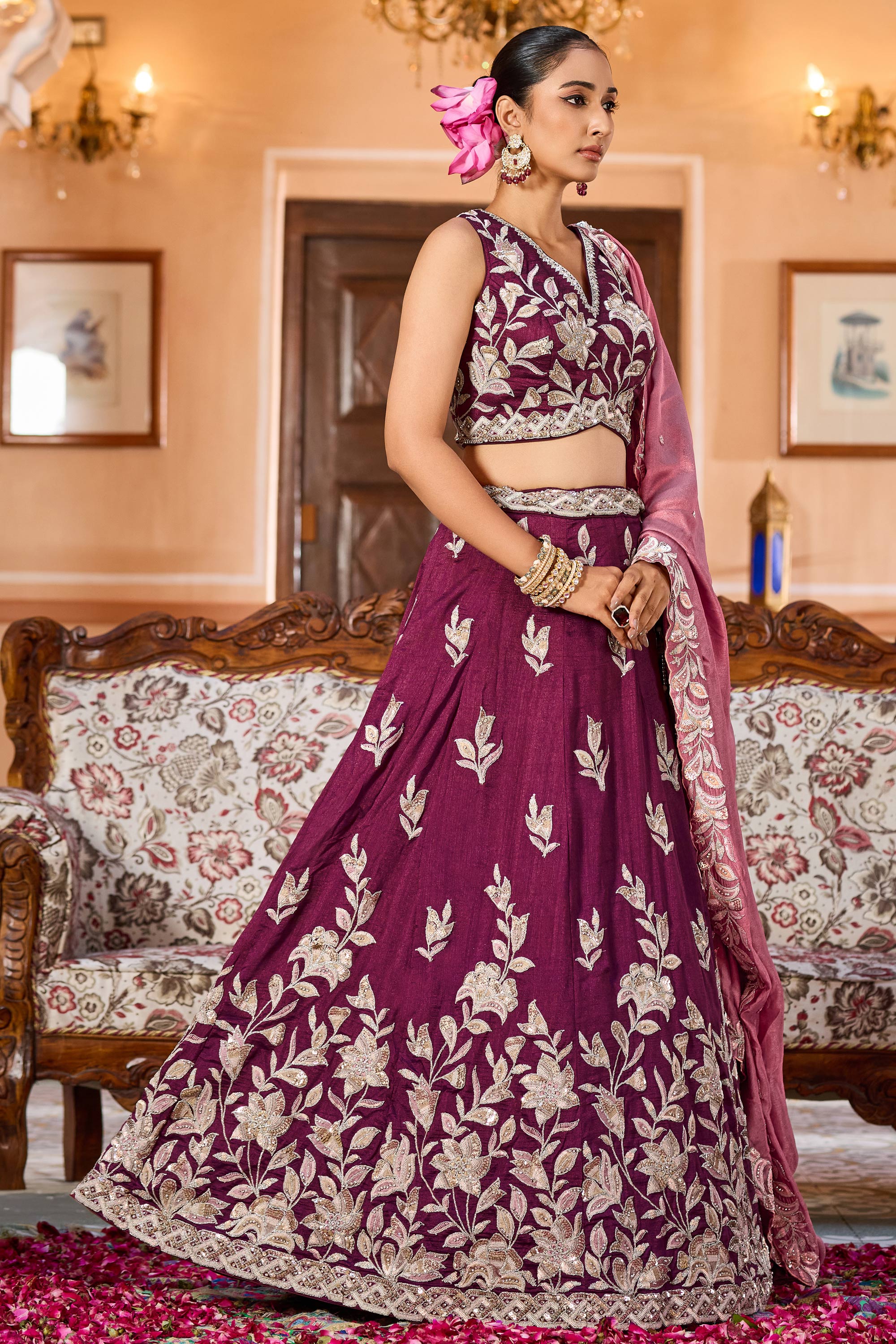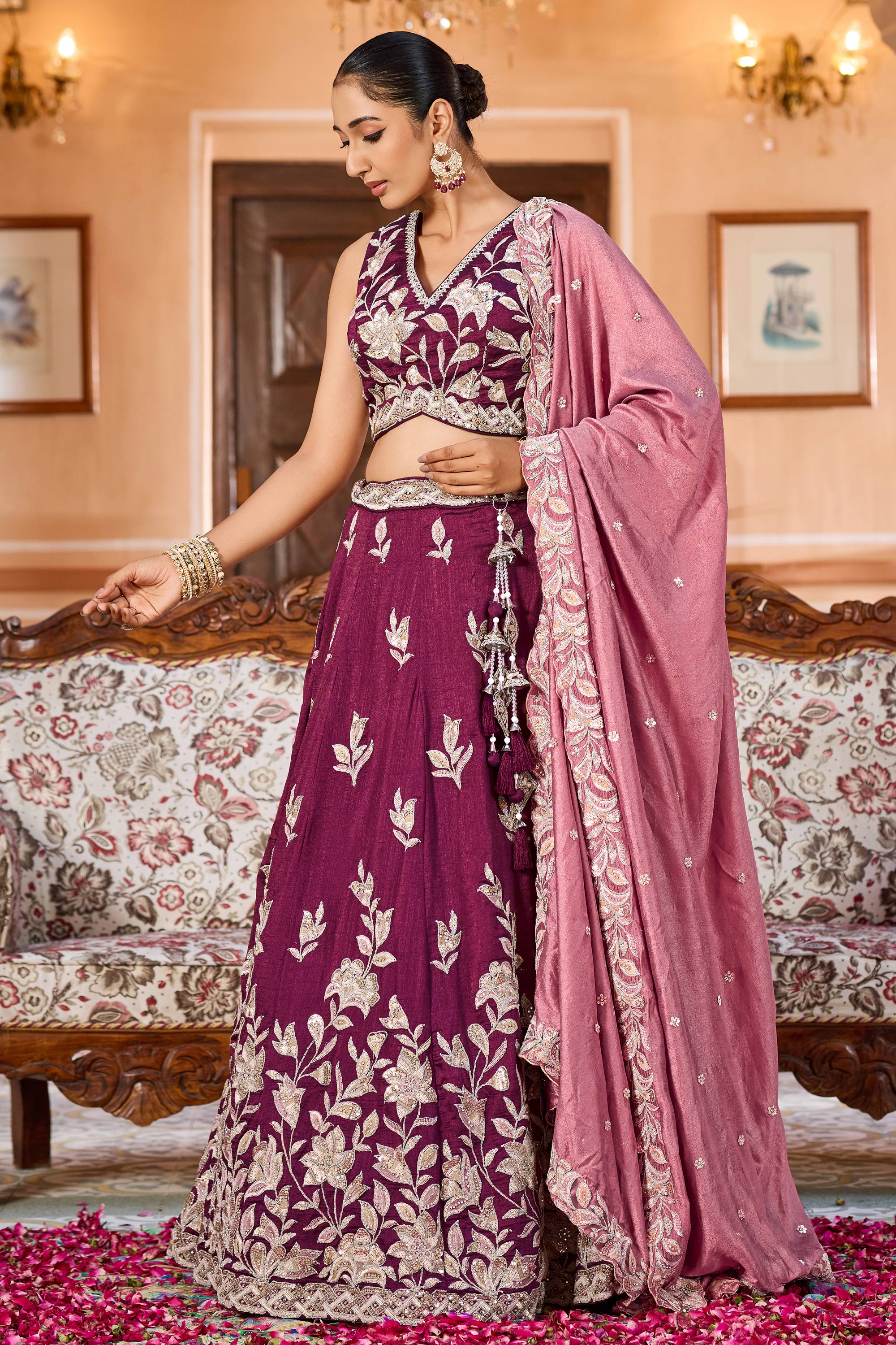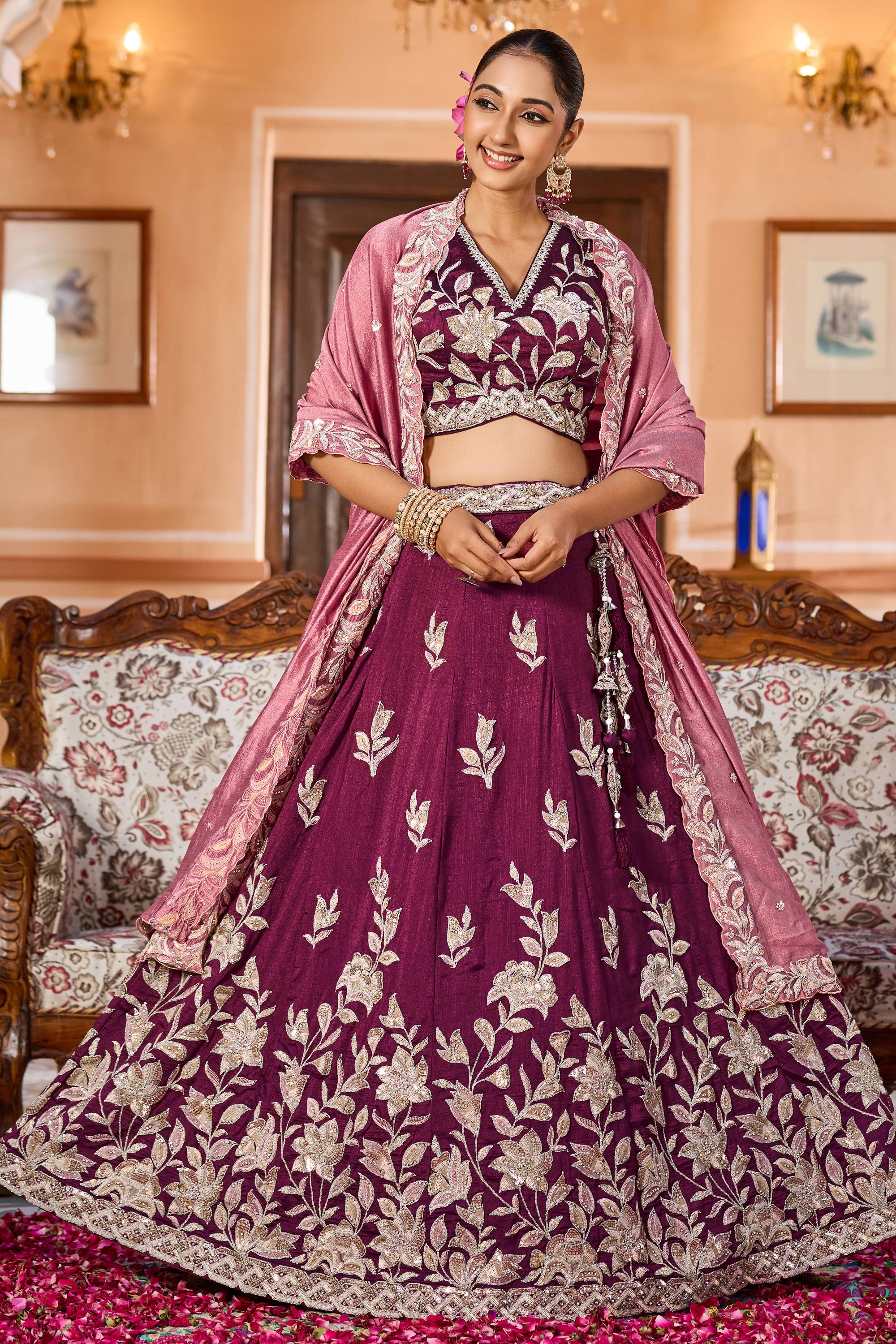 Silk Fabric Embroidered Burgundy Wedding Wear Lehenga Choli