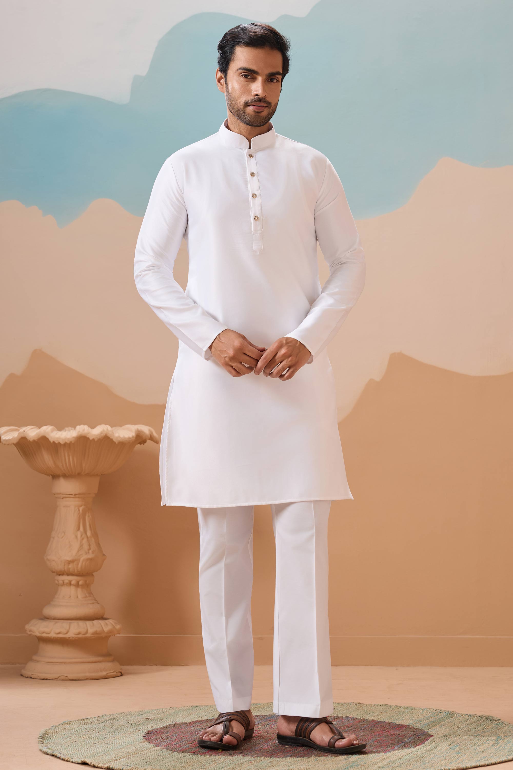 White Function Wear Readymade Men Stylish Kurta Pyjama With Jacket