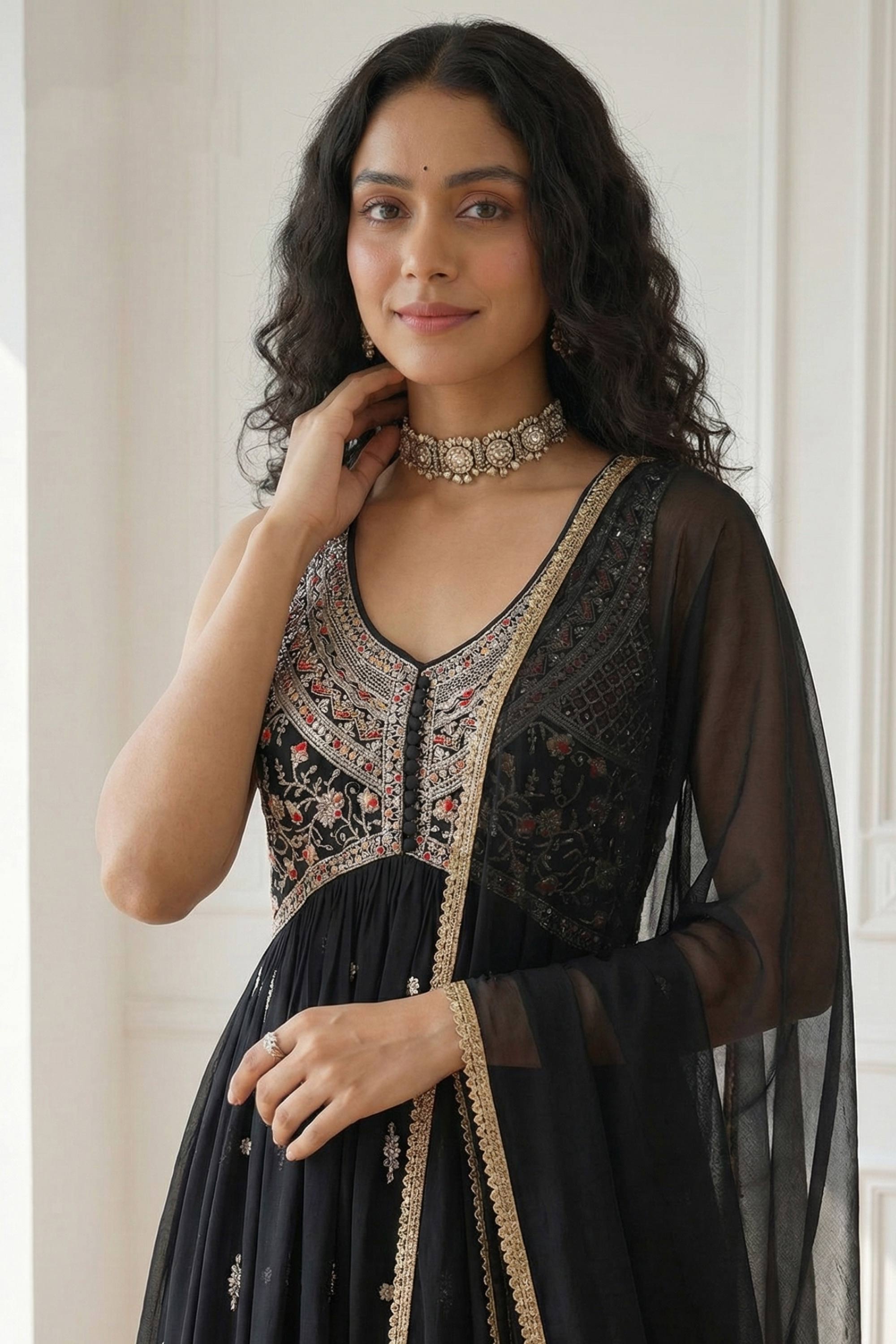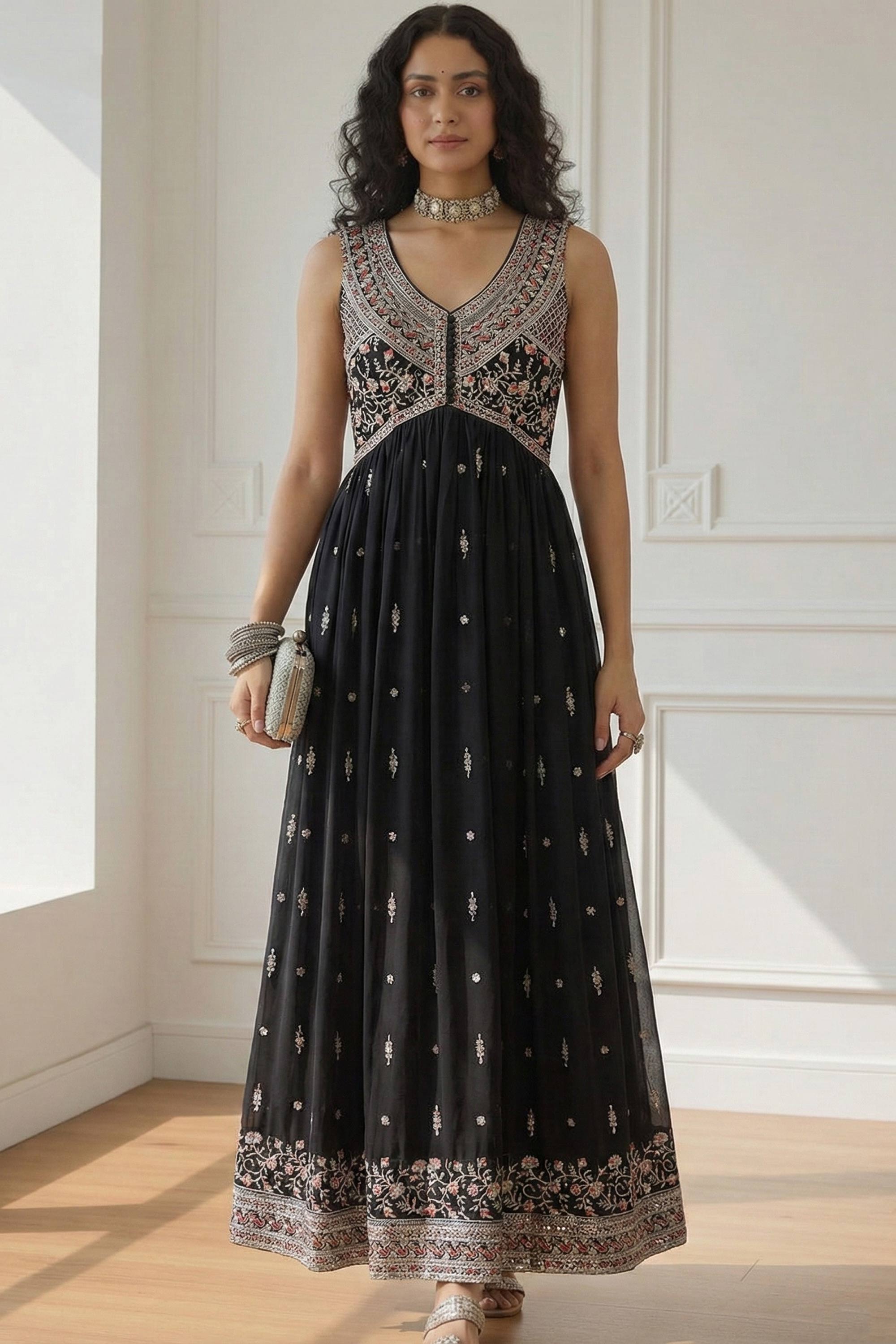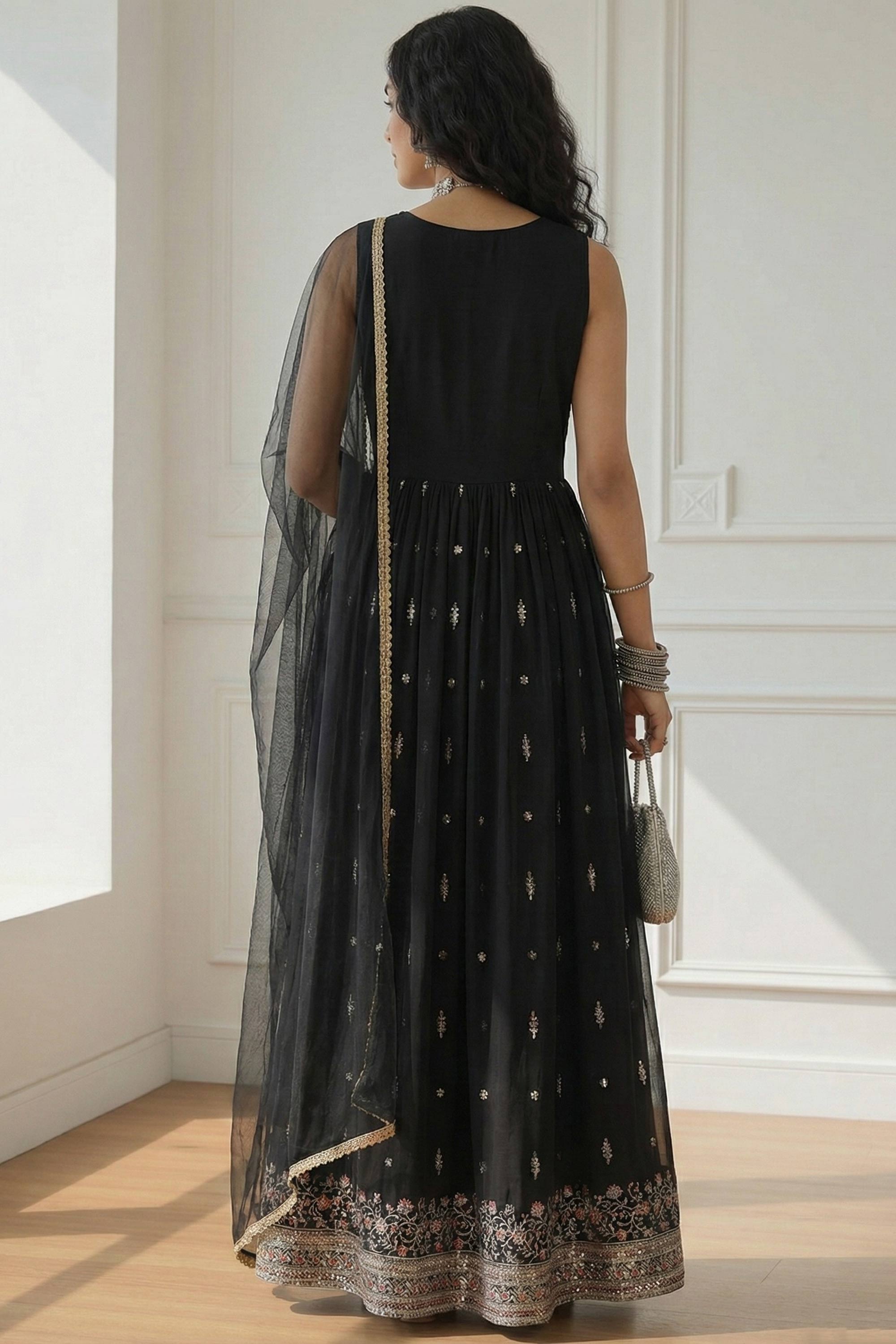 Black Function Wear Georgette Embroidered Readymade Designer Anarkali Salwar Suit