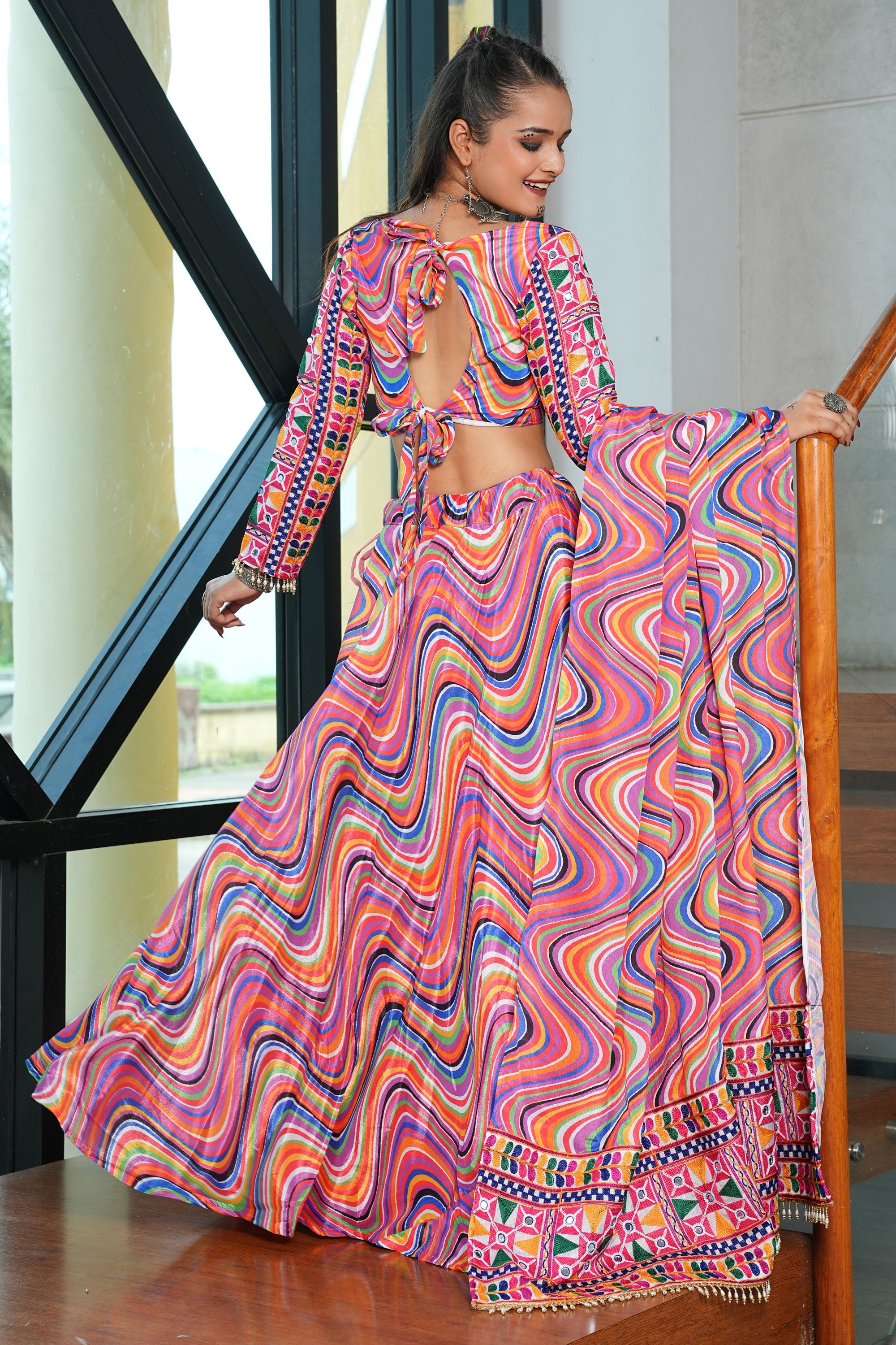 Multi Color Chinon Printed Navratri Special Chaniya Choli