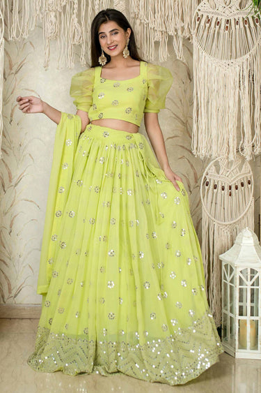 Yellow Georgette Sangeet Wear Sequins Work Chaniya Choli