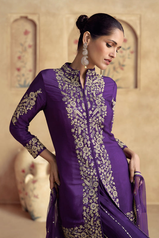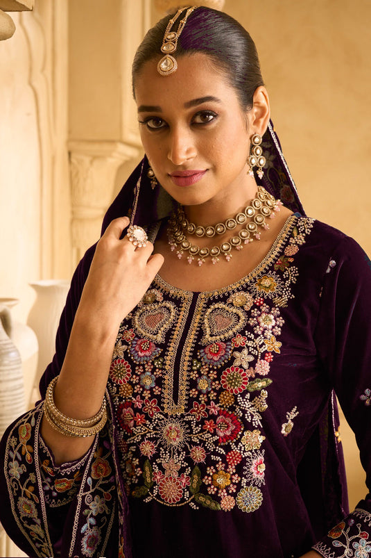 €62,95 EUR€124,95 EUR Original Price Save 50%/ Purple Embroidery Work Readymade Palazzo Salwar KameezSave 50%
