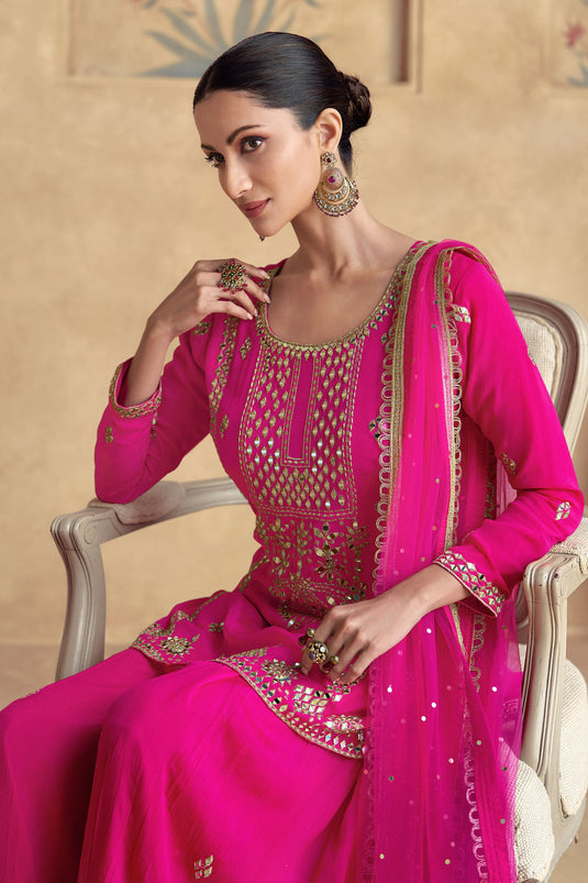 €50,95 EUR€101,95 EUR Original Price Save 50%/ Pink Festive Wear Embroidered Chinon Readymade Palazzo SuitSave 50%