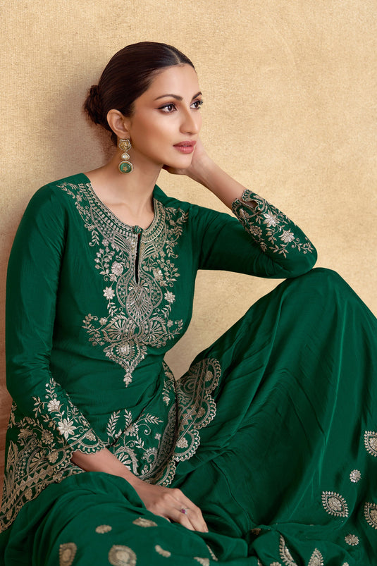 €69,95 EUR€139,95 EUR Original Price Save 50%/ Green Embroidered Chinon 3 Piece Readymade Sharara Style Salwar SuitSave 50%