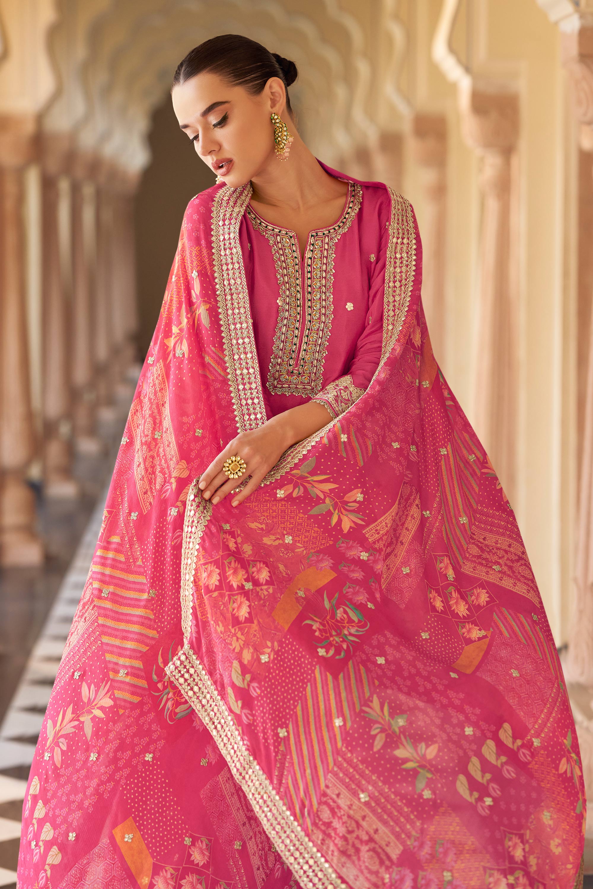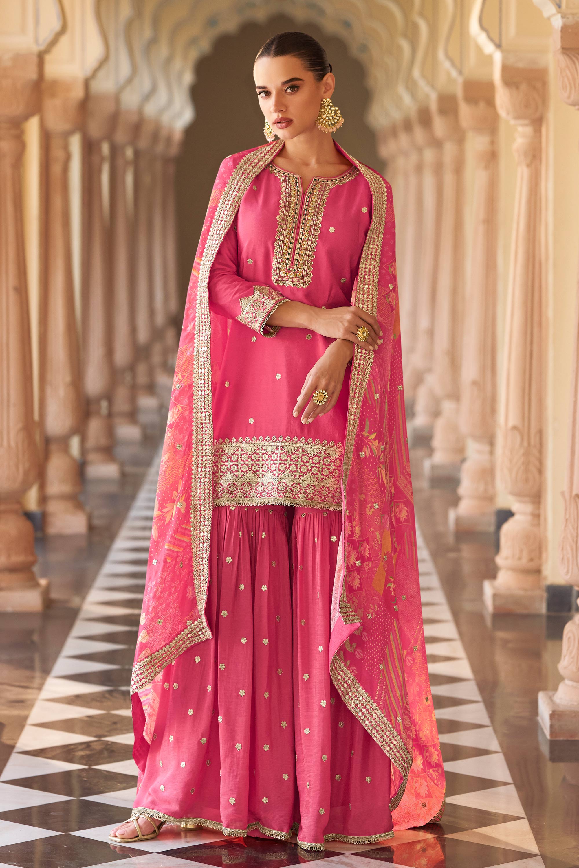 Pink Festive Wear Chinon Silk Embroidered Readymade Sharara Salwar Suit