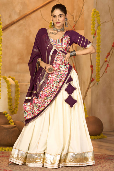 9 Raas Special Beige Crepe Lehenga Choli In Every Garba Night