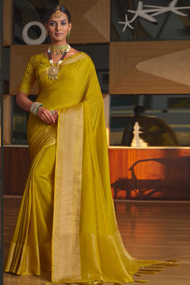Art Silk Fabric Festive Wear Vivacious Saree In Yellow Color