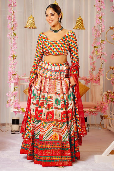 Red Art Silk Festive Wear Readymade Crop Top Lehenga