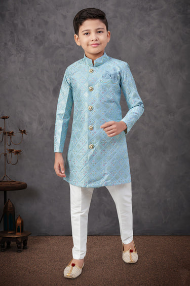 Sky Blue Color Traditional Wear Readymade Indo Western For Boys