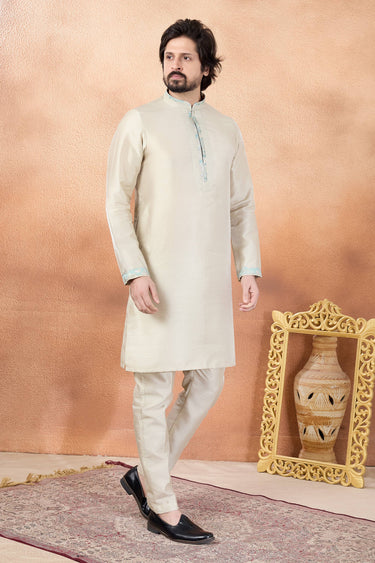 Art Silk Beige Function Wear Readymade Kurta Pyjama For Men