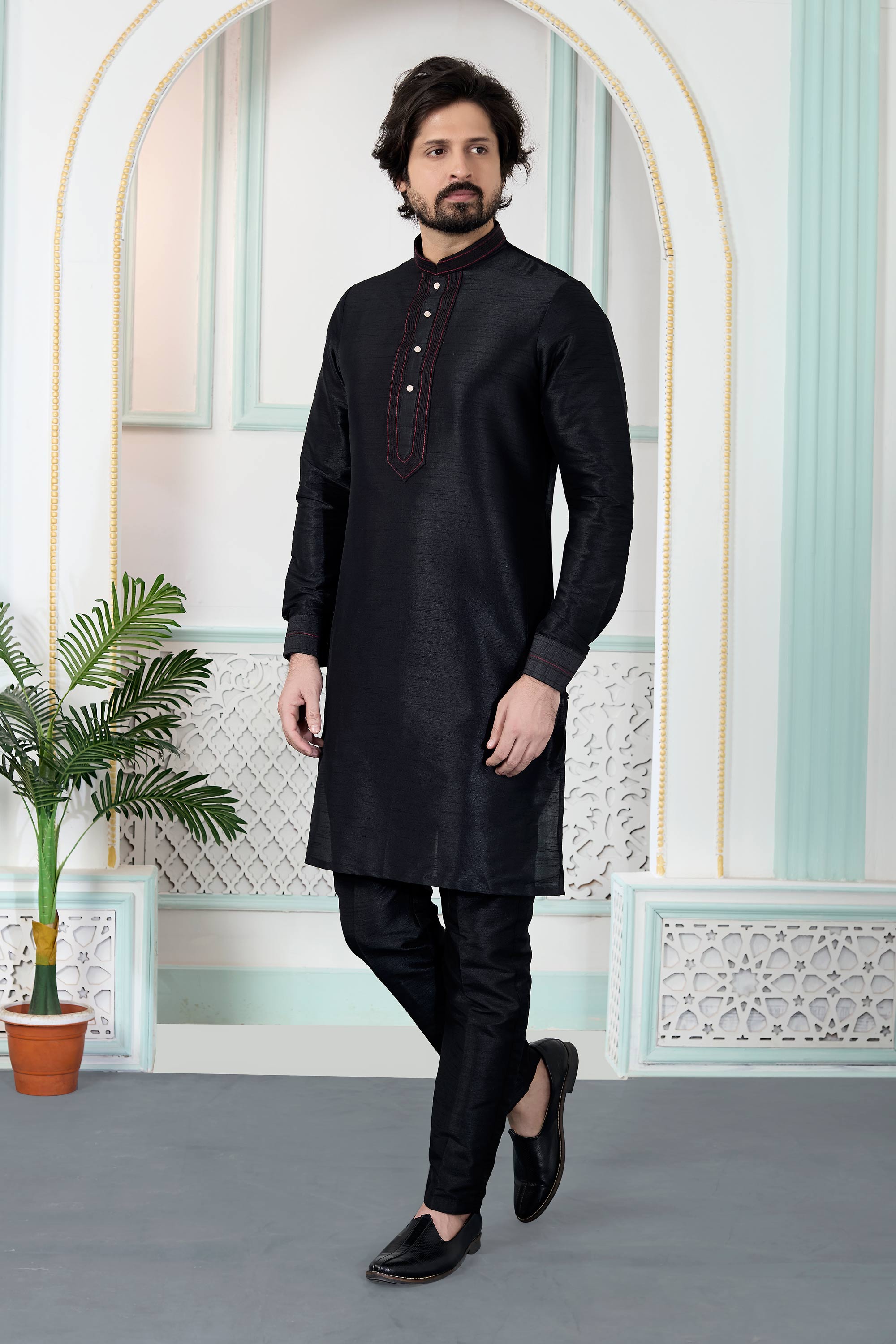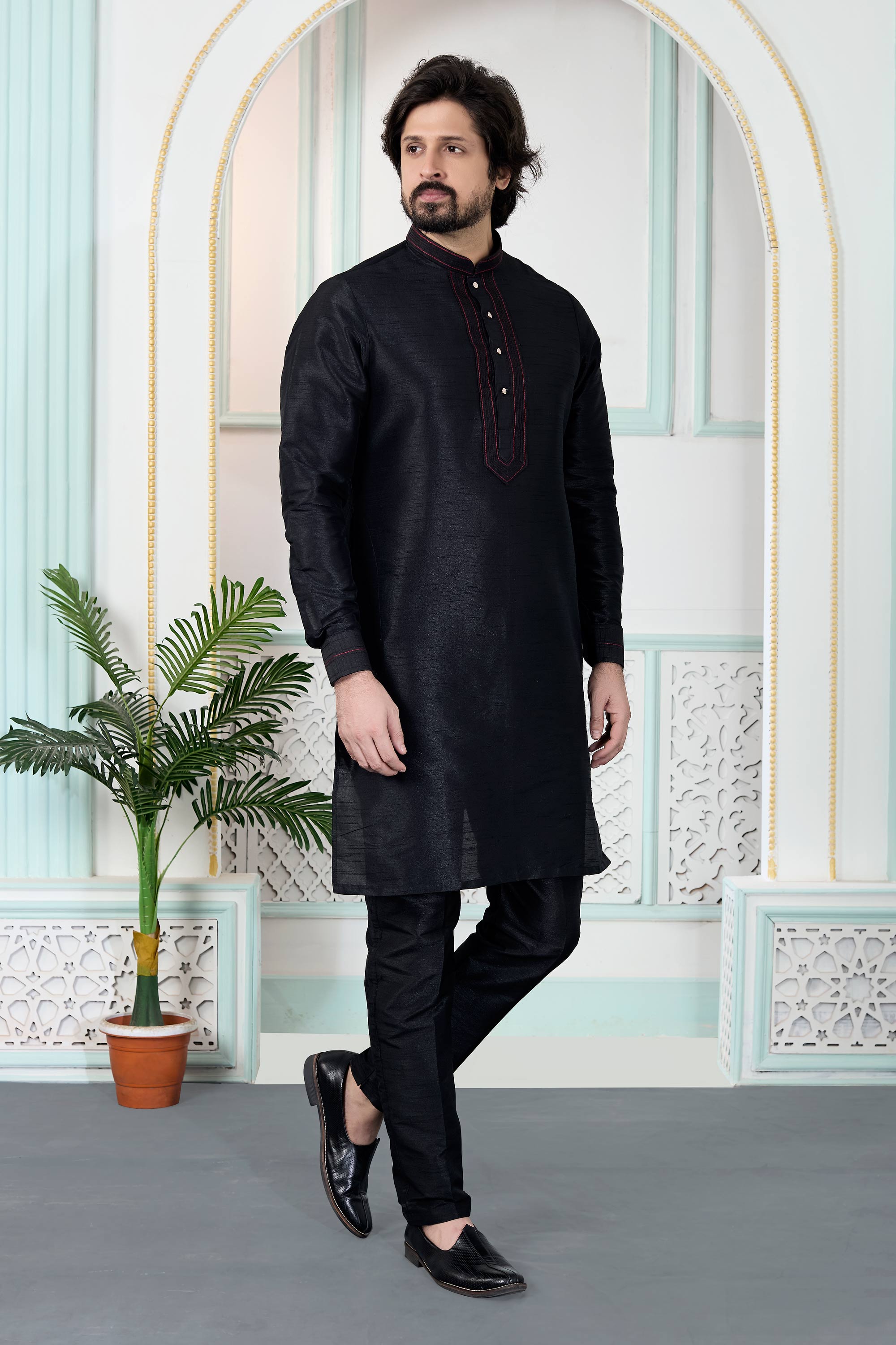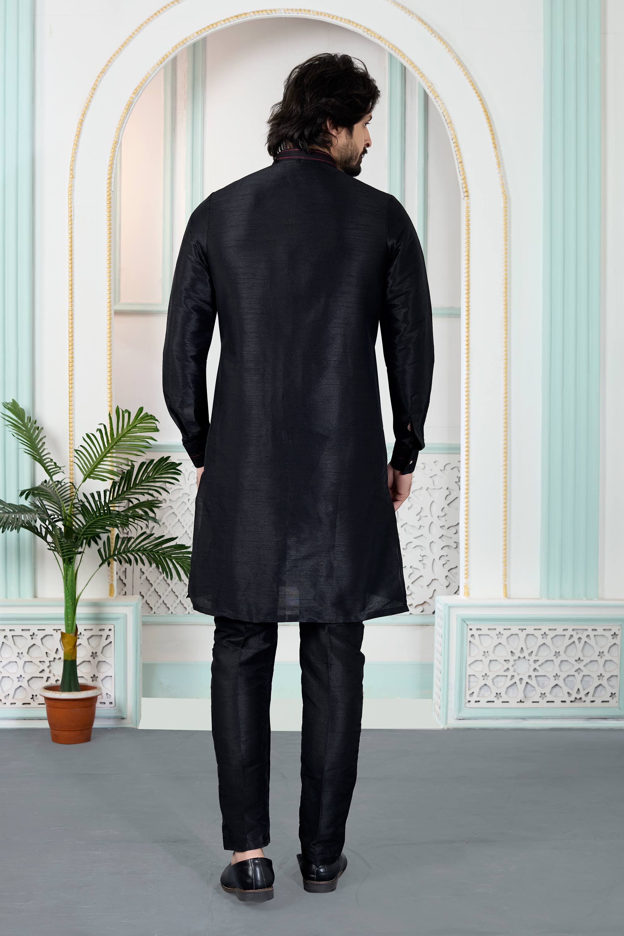 Art Silk Black Men Readymade Kurta Pyjama For Function Wear