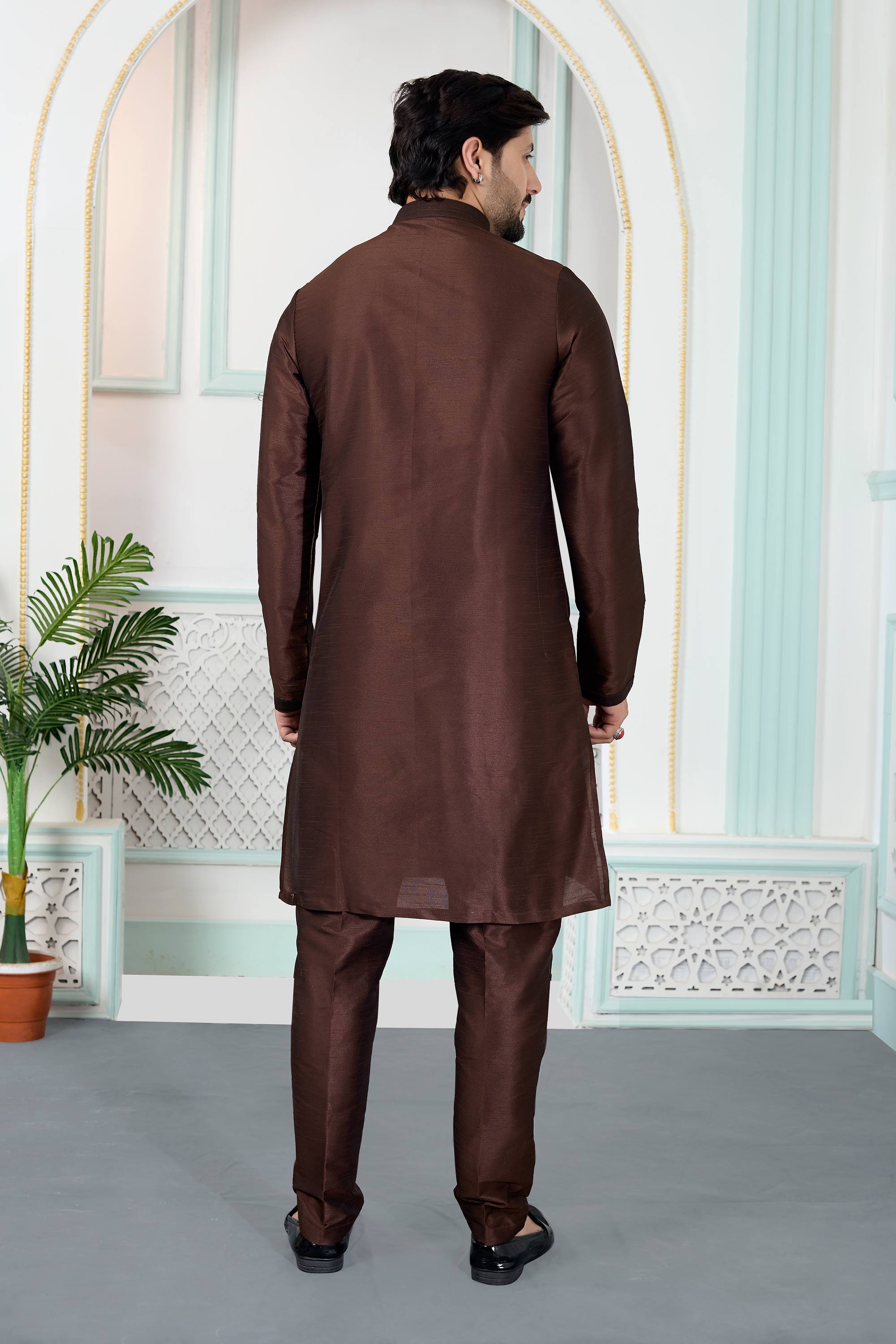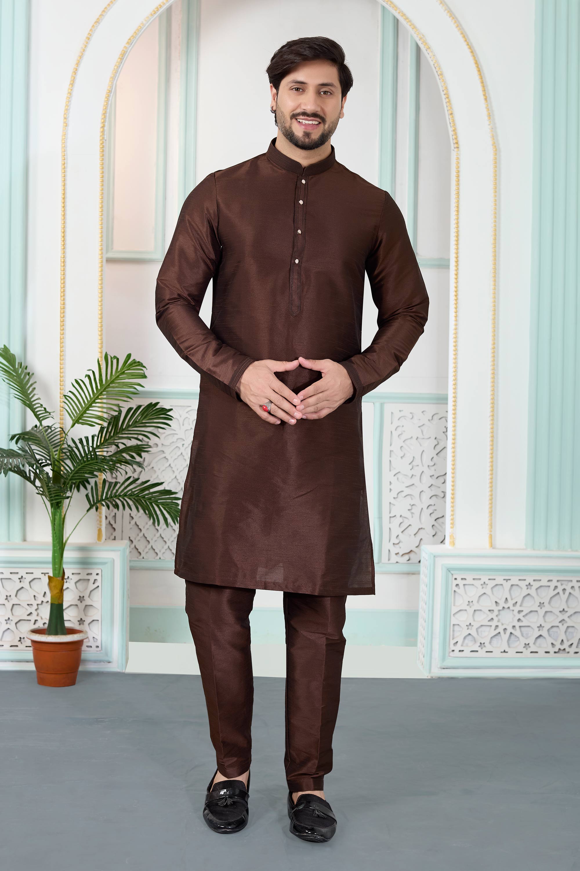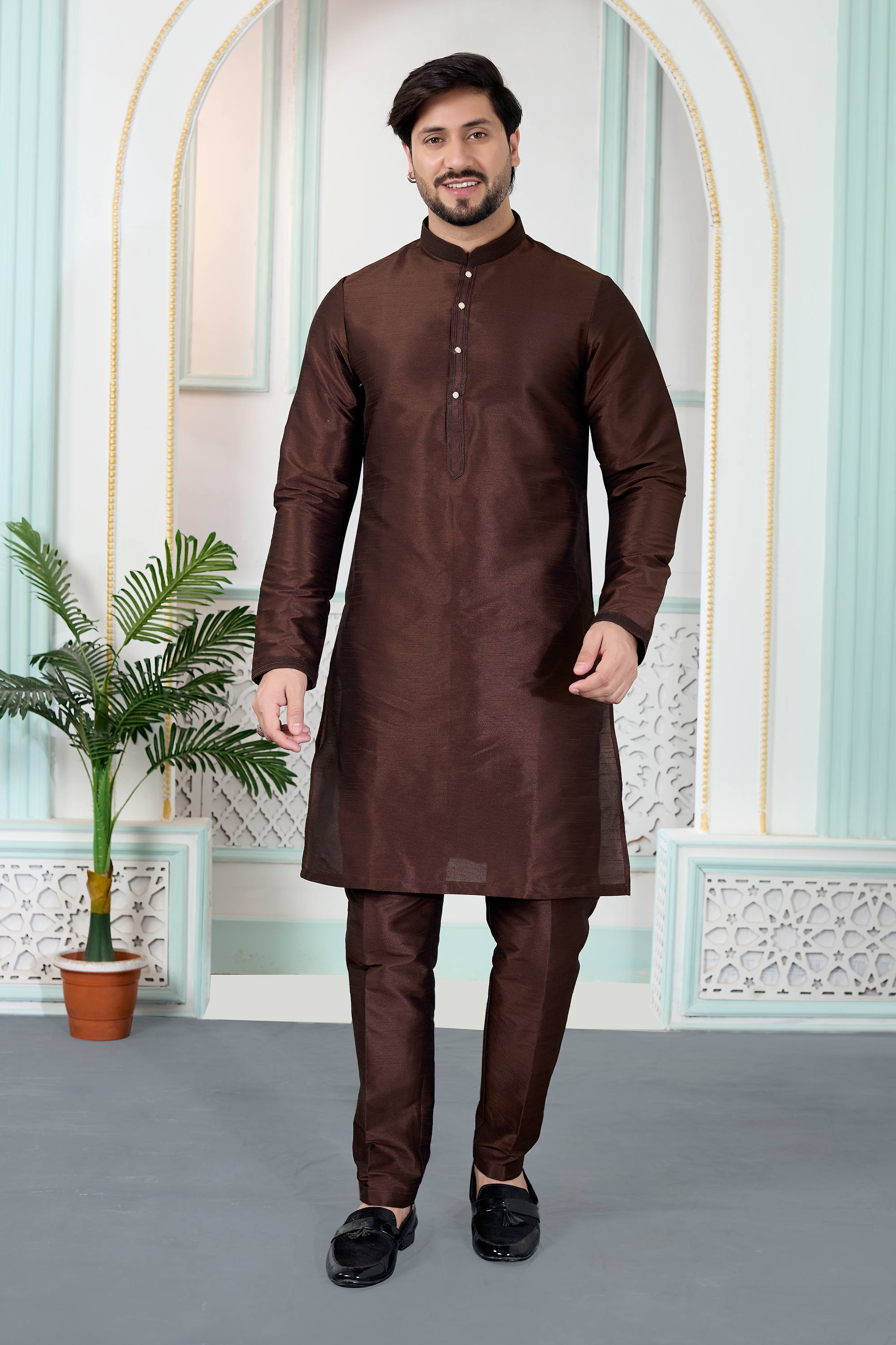 Brown Art Silk Men Readymade Kurta Pyjama For Function Wear