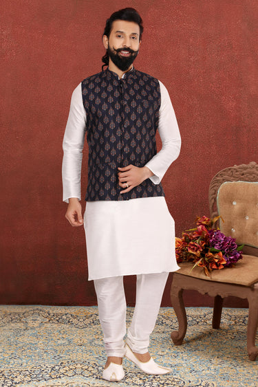 Dhupion Silk White Festive Wear Readymade Lovely Kurta Pyjama For Men With Jacket