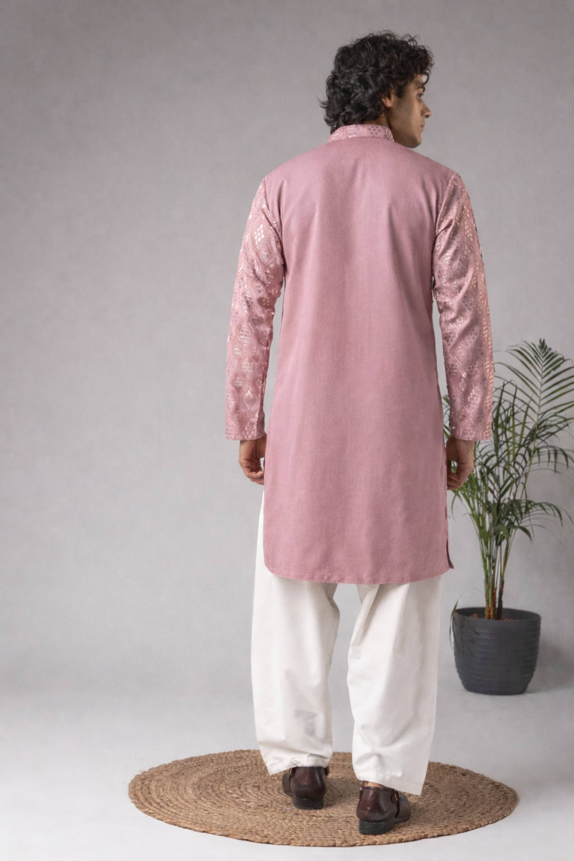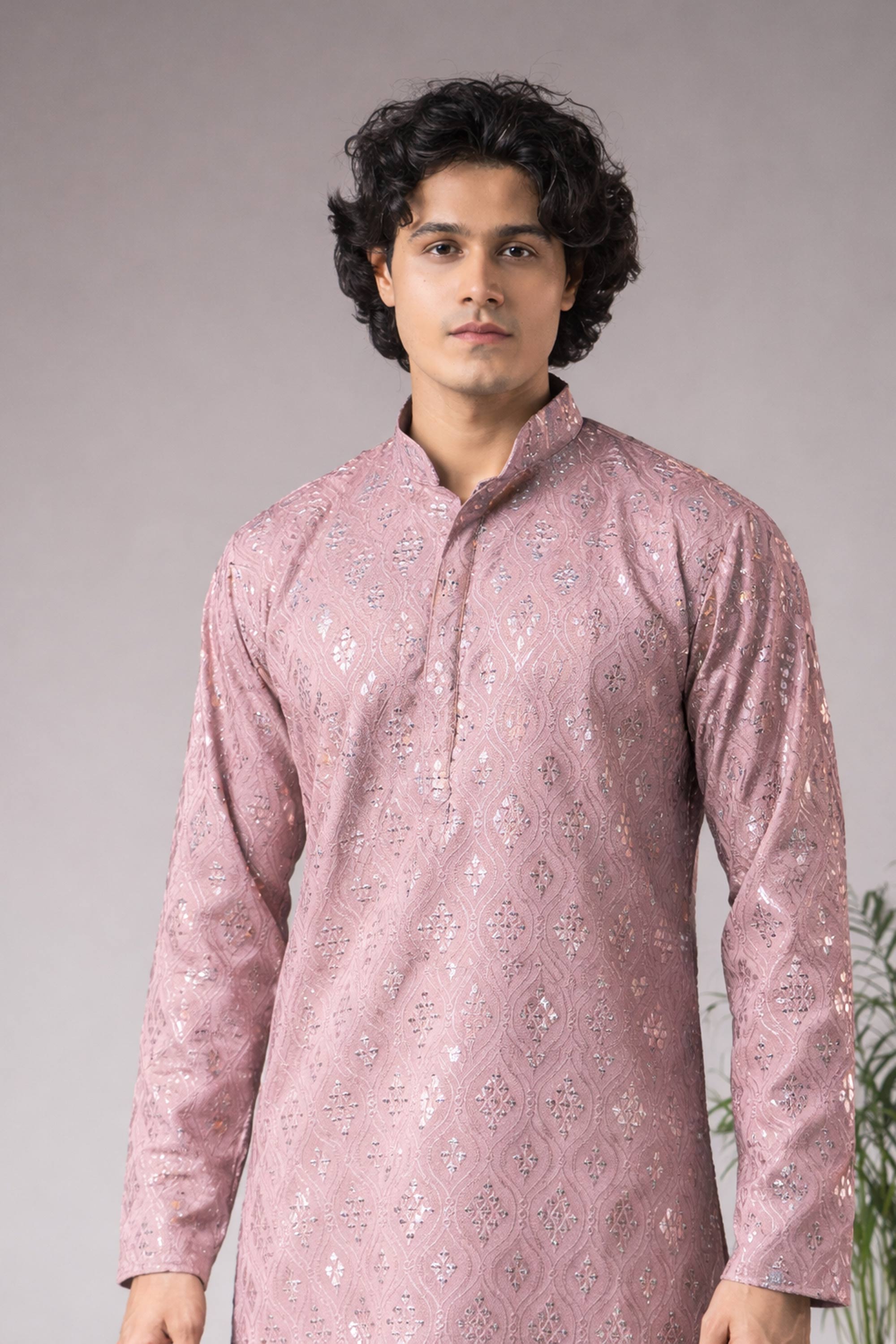 Lavender Function Wear Viscose Embroidered Readymade Kurta Pyjama For Men