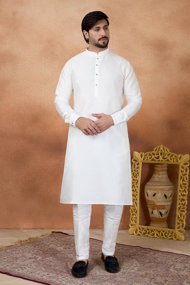 Off White Function Wear Art Silk Readymade Kurta Pyjama For Men