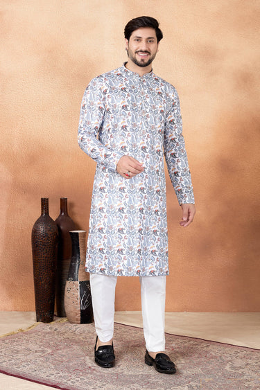 Off White Function Wear Art Silk Readymade Kurta With Aligadhi Pant For Men