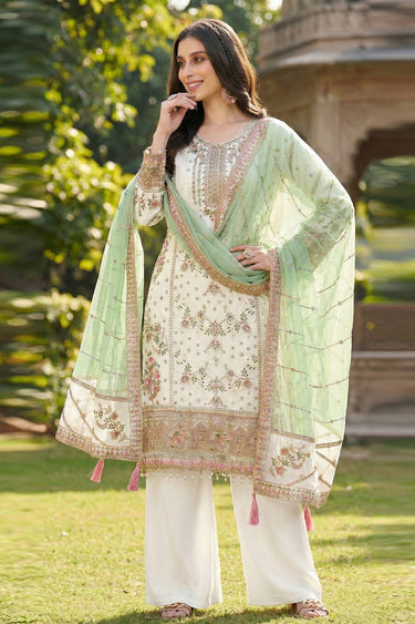 Georgette Embroidered Beige Designer Salwar Suit For Function Wear