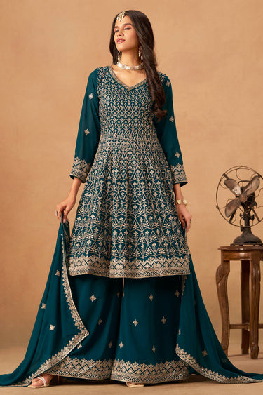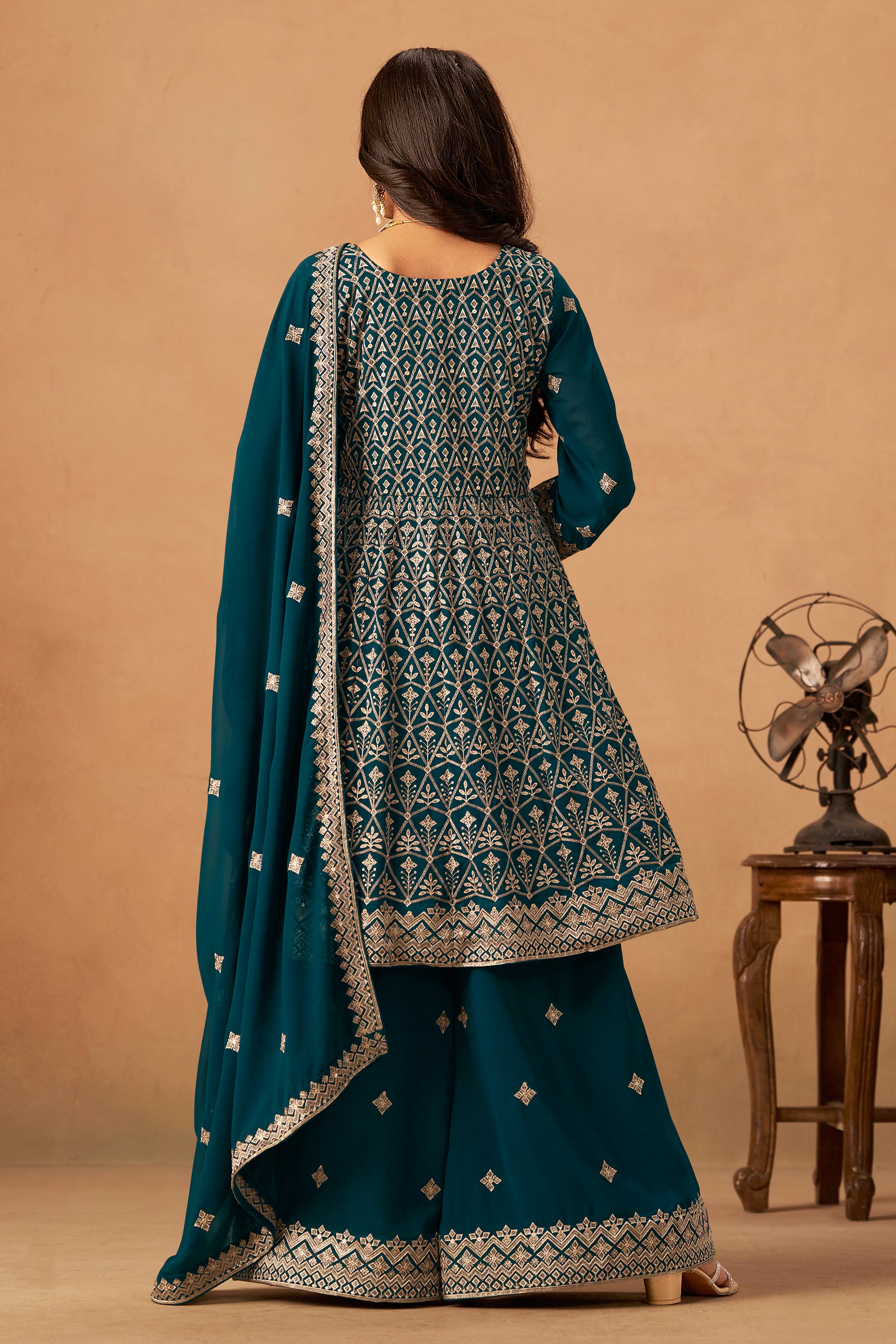 Elegant Georgette Designer Palazzo Salwar Kameez – A Stunning Choice for All Occasions! Crafted from premium quality georgette fabric, this salwar kameez set combines style and comfort effortlessly. The flowing palazzo pants add a modern twist to the traditional outfit, making it suitable for weddings, parties, and festive events. The intricately designed kameez features beautiful embroidery, highlighting every detail to perfection. Lightweight and breathable, this attire ensures ease of movement throughout the day. Whether you accessorize it with bold jewelry or keep it minimal, this versatile outfit adapts to your style. Add grace and charm to your wardrobe with this timeless piece today!