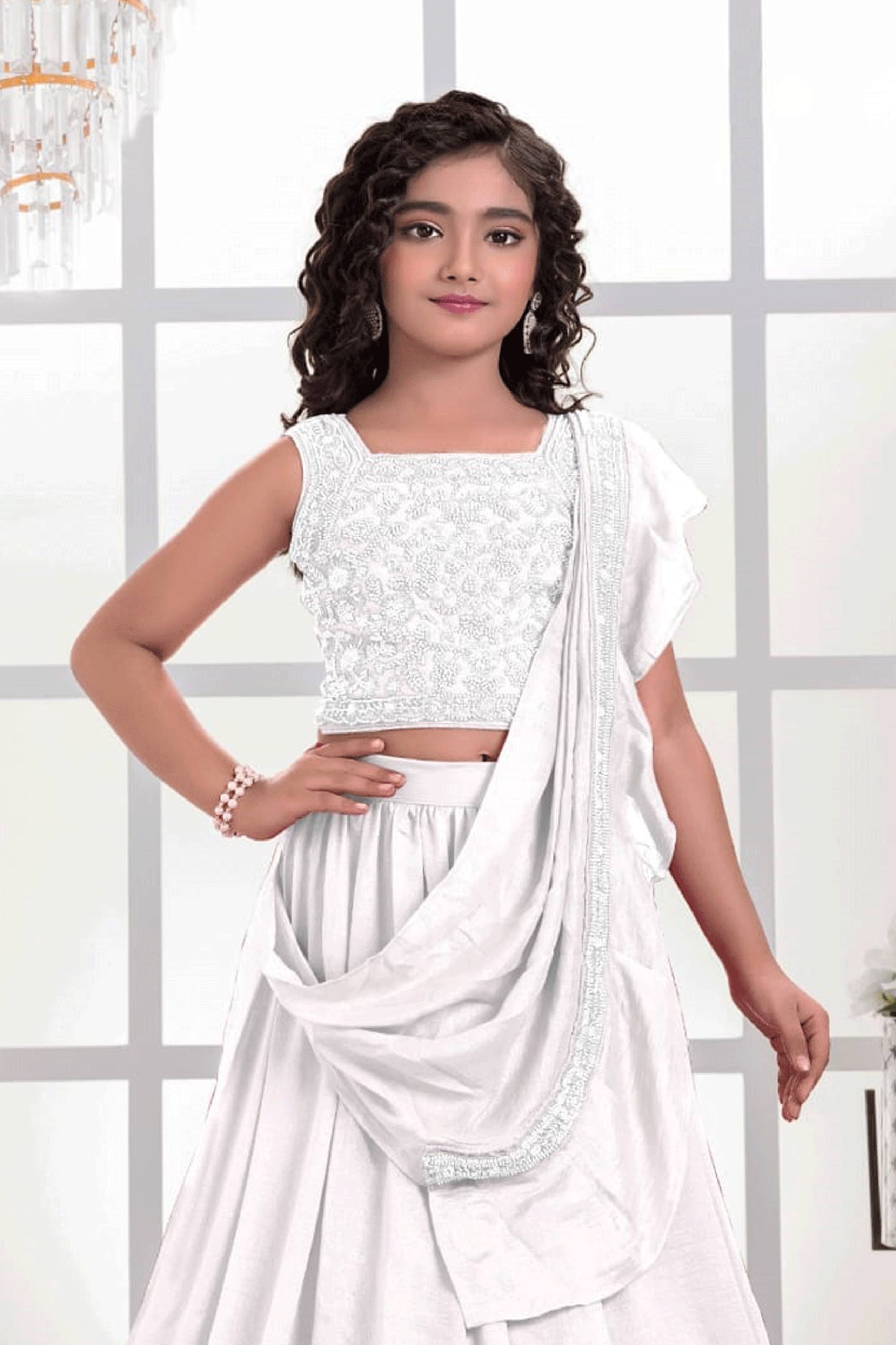 Art Silk Fabric White Festive Wear Readymade Lehenga Choli For Kids