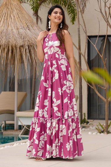 Pink Designer Floor Touch Digital Printed Readymade Gown