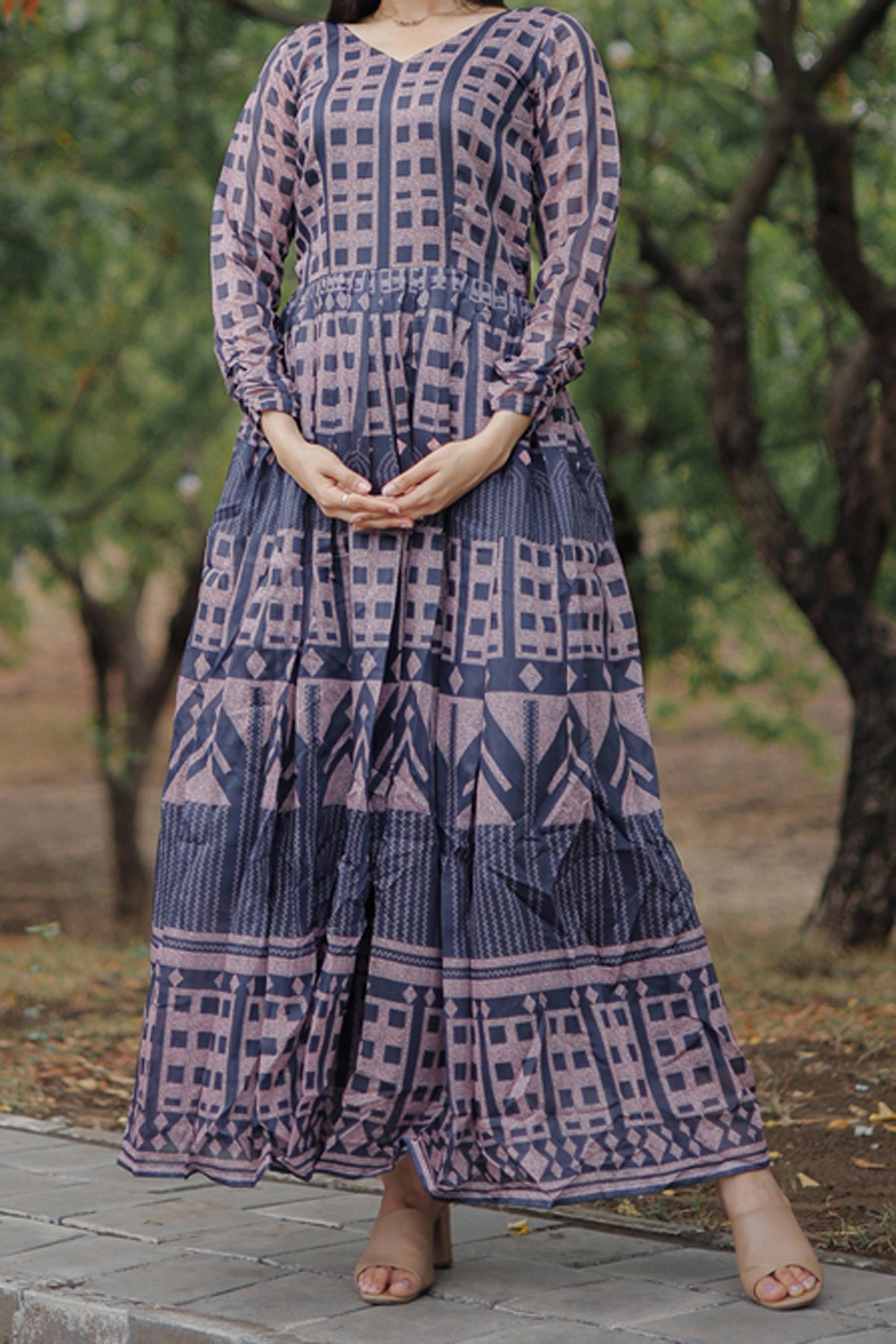Celebrate special moments in style with this elegant Readymade Gown crafted from smooth Pure Chanderi fabric for a graceful drape. The soft cotton inner enhances comfort, while the printed work adds to its refined appeal. Designed in a rich color, this gown is perfect for functions, although slight color variations may occur due to digital photography.