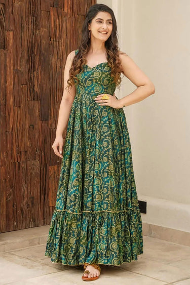 Trendy Digital Printed Rayon Fabric Green Color Readymade Gown
