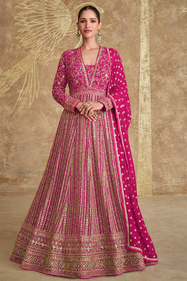 Vartika Singh Rani Color Fashionable Georgette Gown With Dupatta