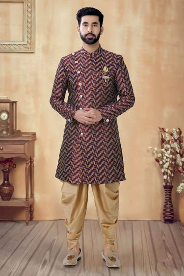 Maroon Color Engaging Jacquard Fabric Festive Wear Readymade Indo Western For Men