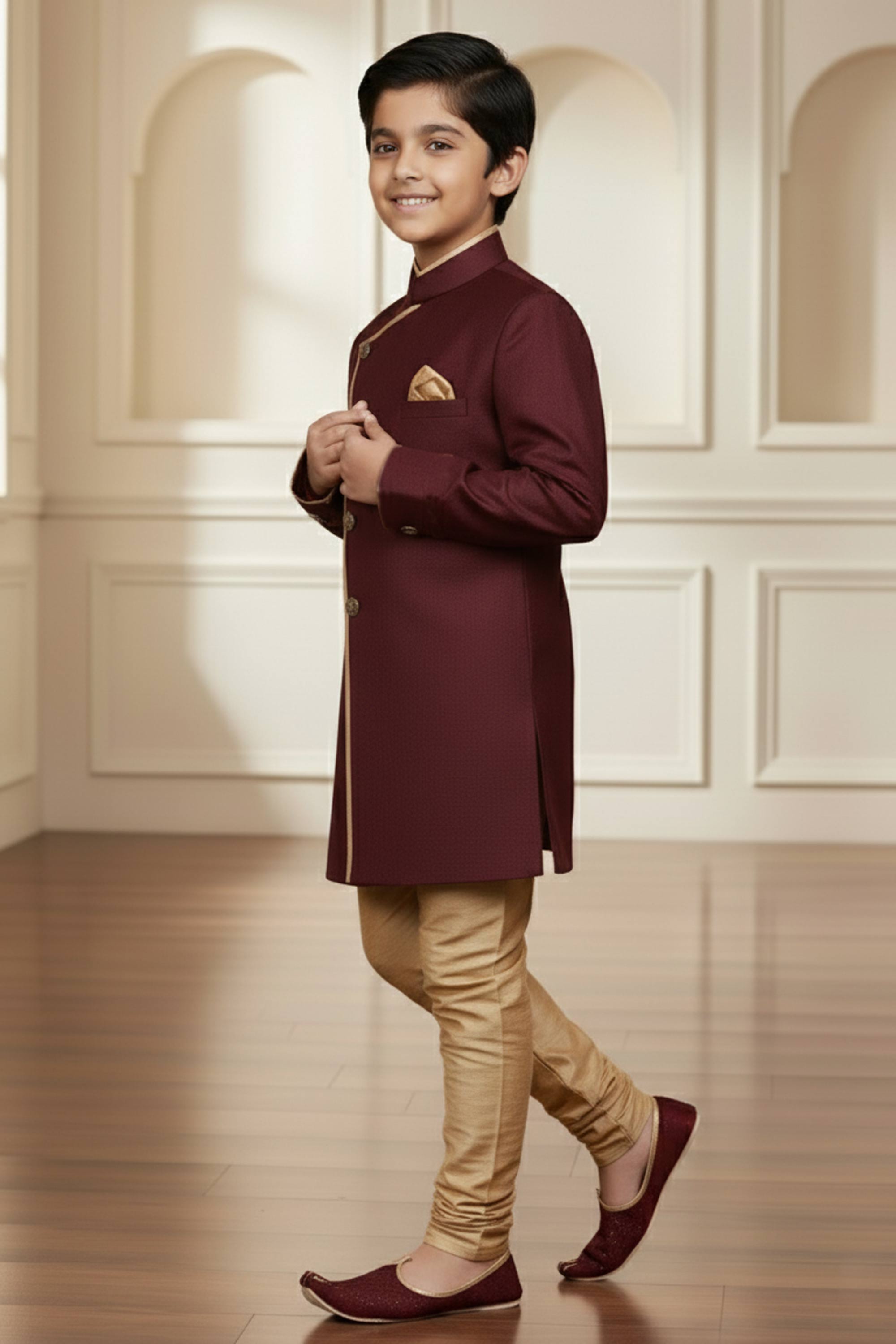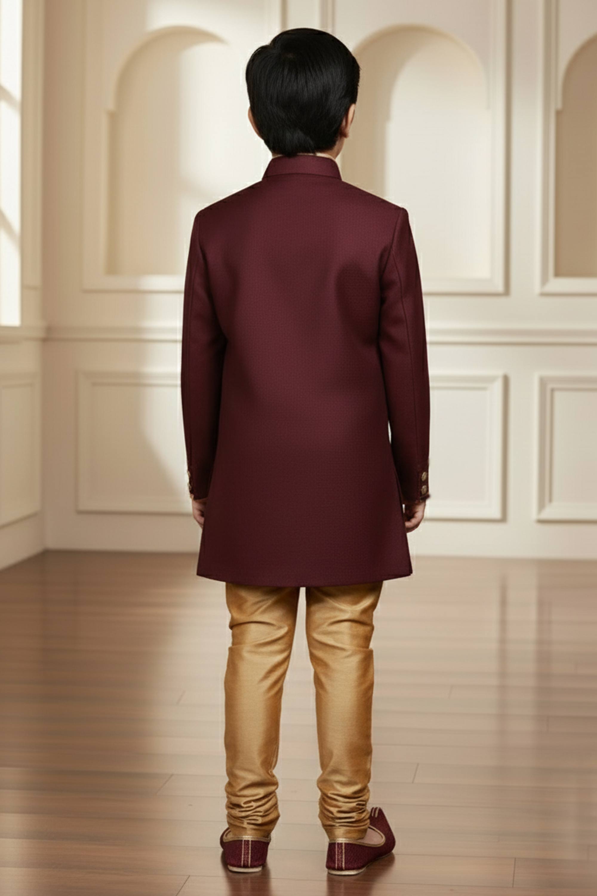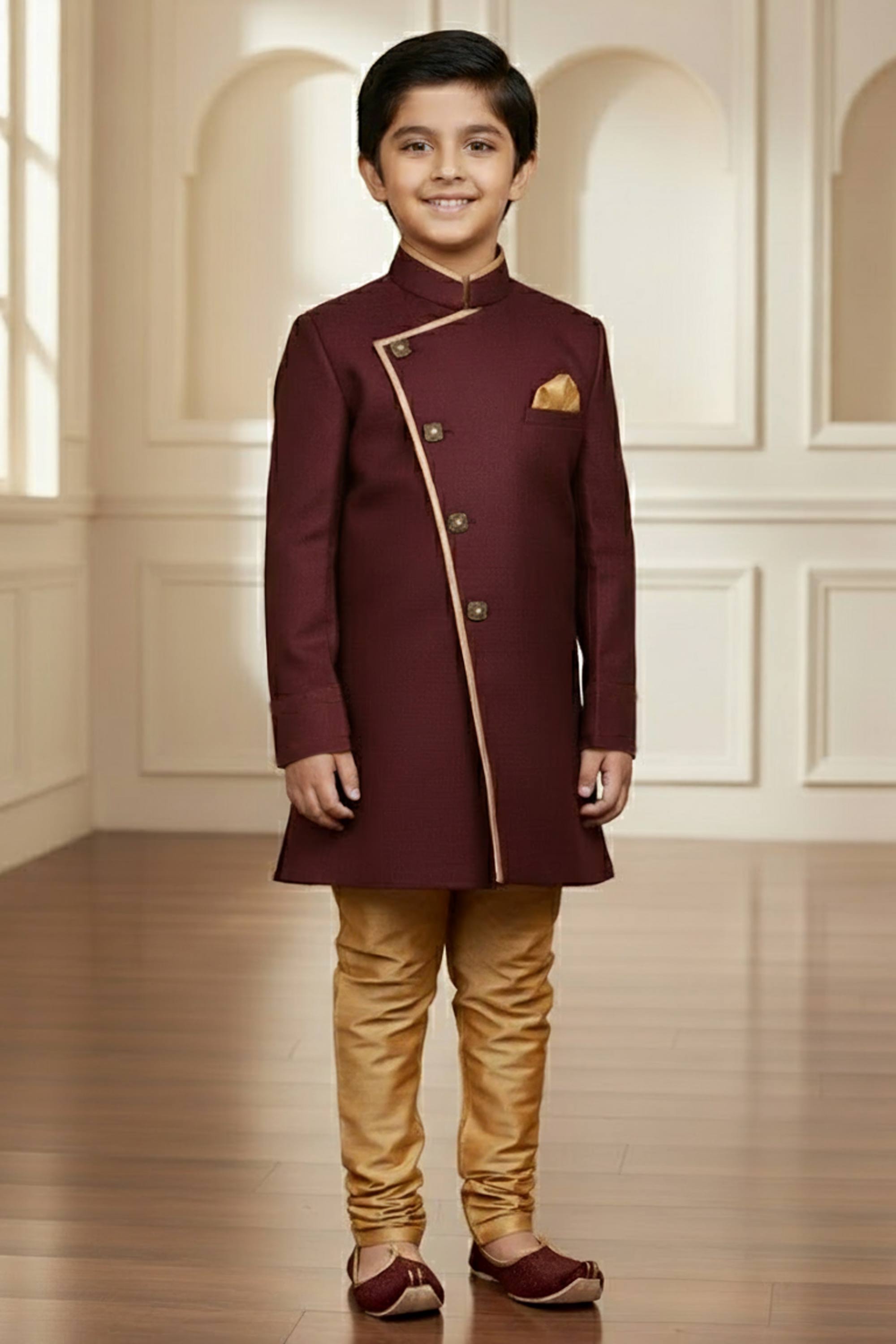 Art Silk Fabric Maroon Readymade Indo Western For Boys