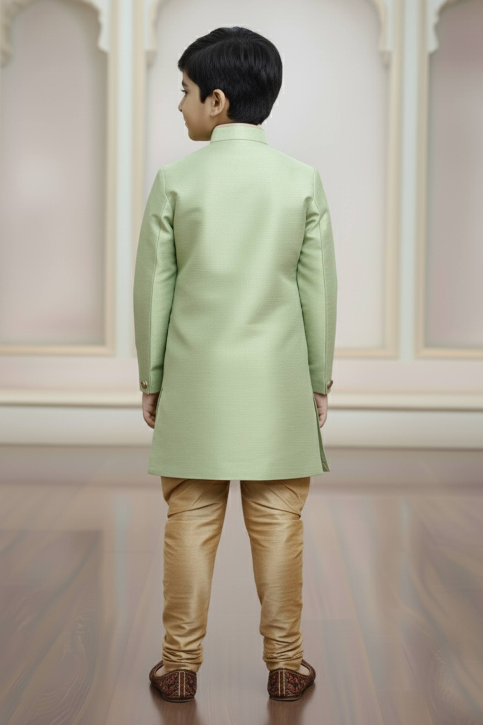 Art silk Fabric Sea Green Readymade Indo Western For Boys