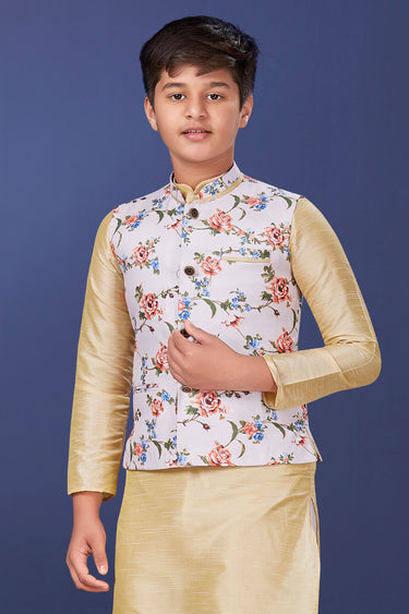 Occasion Wear Beige Color Cotton Fabric Readymade Boys Jacket