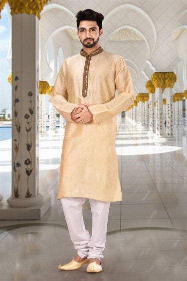 Reception Wear Attractive Readymade Men Kurta Pyjama In Beige Color