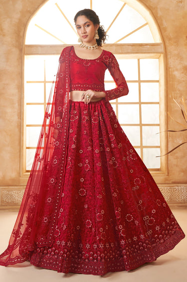 Make your wedding memorable with this stunning Lehenga Choli in beautiful colors. Crafted from soft net, the set includes a lehenga and blouse complemented by a matching dupatta. It features intricate designer thread embroidery and dazzling diamond work. Customizable up to size 42 for the perfect fit. Dry clean only to preserve its intricate work.Please note: The accessories worn by the model are not included. Product color may differ slightly due to lighting or display settings. Ships within 10 working days.