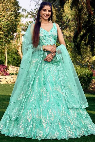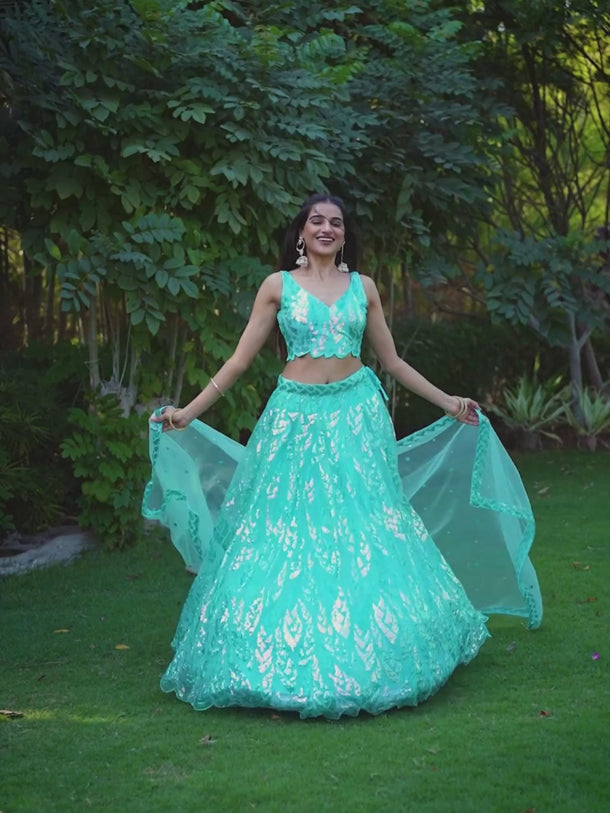 Step into the spotlight with our exquisite Designer Lehenga, meticulously crafted from delicate net fabric. This stunning piece, designed for function wear, features intricate sequins work that sparkles with every move, ensuring you stand out at any event. The lehenga drapes gracefully, offering a perfect blend of tradition and contemporary style. Whether you're attending a wedding, a festive celebration, or a grand party, this lehenga promises to make you the center of attention. Pair it with statement jewelry and a matching dupatta for a look that's truly unforgettable.