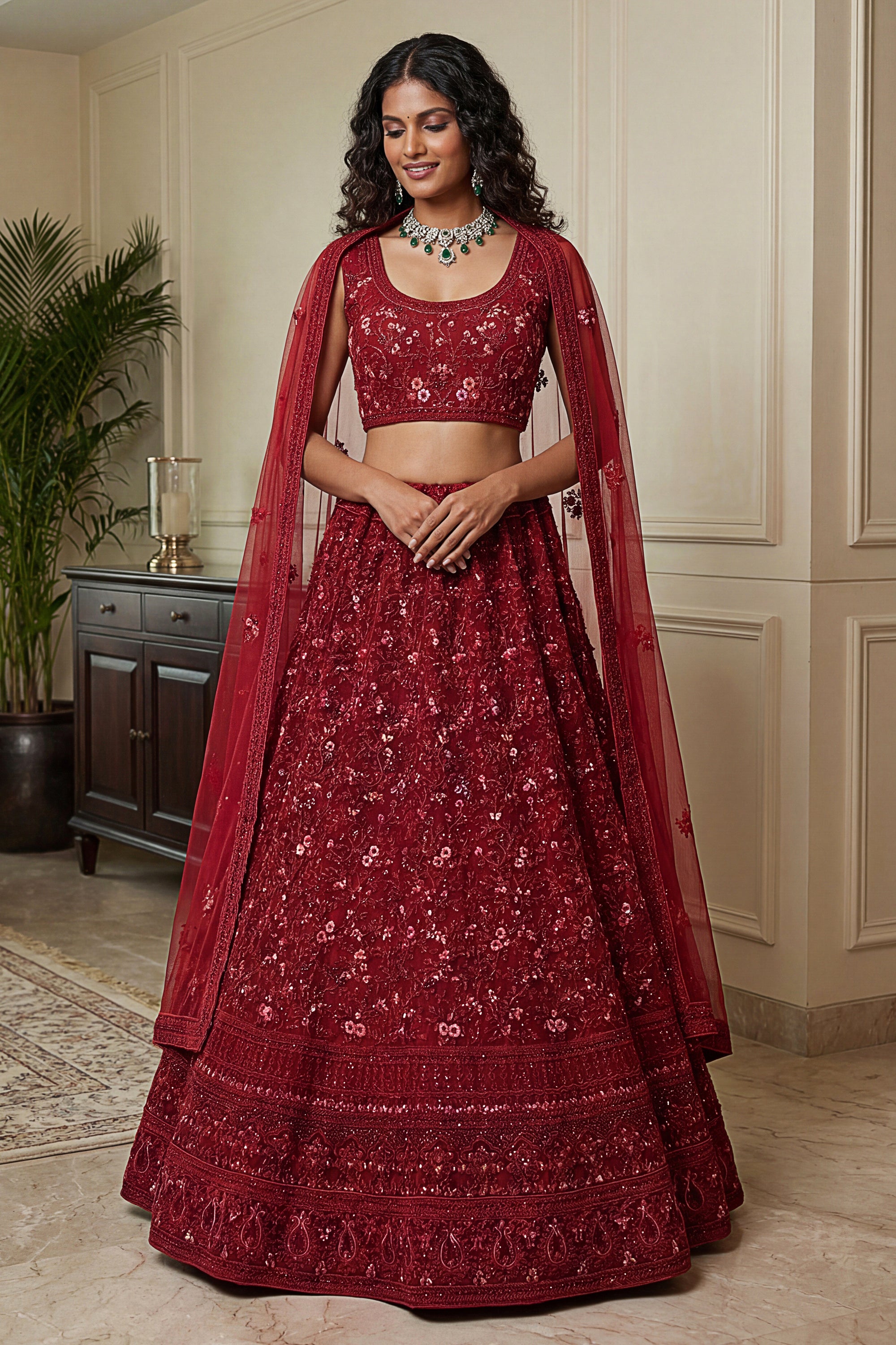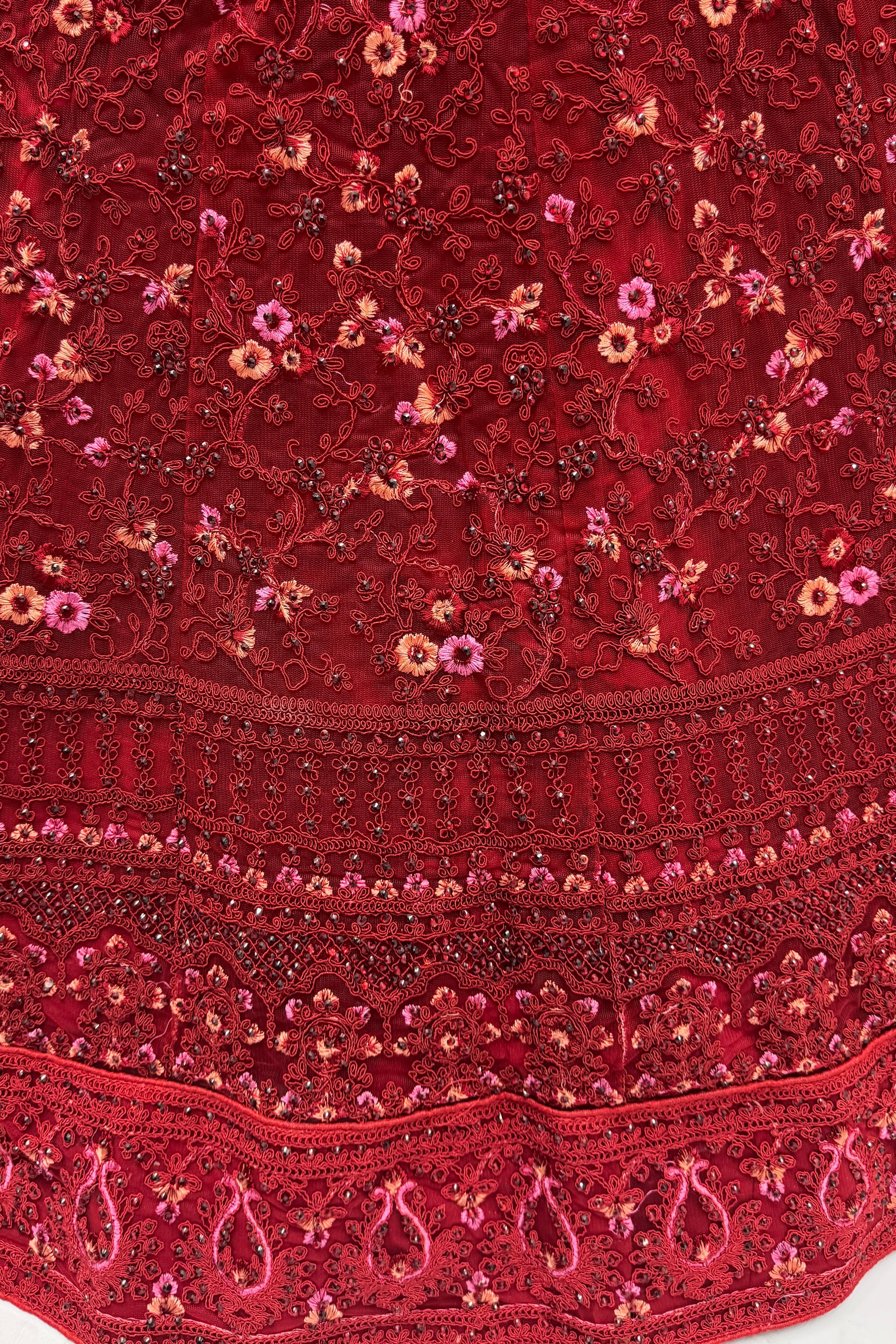 Elevate your bridal elegance with this Luxury Heavy Embroidery Red Designer Net Lehenga Choli, crafted for a regal wedding look. The lehenga features intricate heavy embroidery work with fine detailing that enhances its richness and grandeur. Made from premium quality net fabric, it offers a graceful flare and lightweight comfort for long celebrations. The matching designer choli is beautifully adorned with detailed embroidery, perfectly complementing the lehenga. Paired with a stunning dupatta featuring elegant borders and delicate work, this outfit is ideal for bridal wear, wedding ceremonies, receptions, and sangeet functions. A perfect blend of traditional craftsmanship and modern designer style.