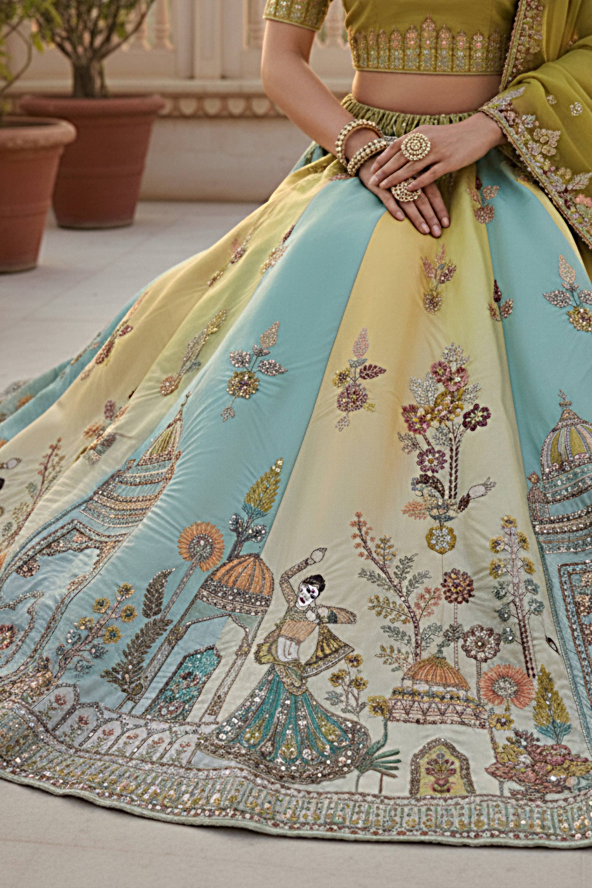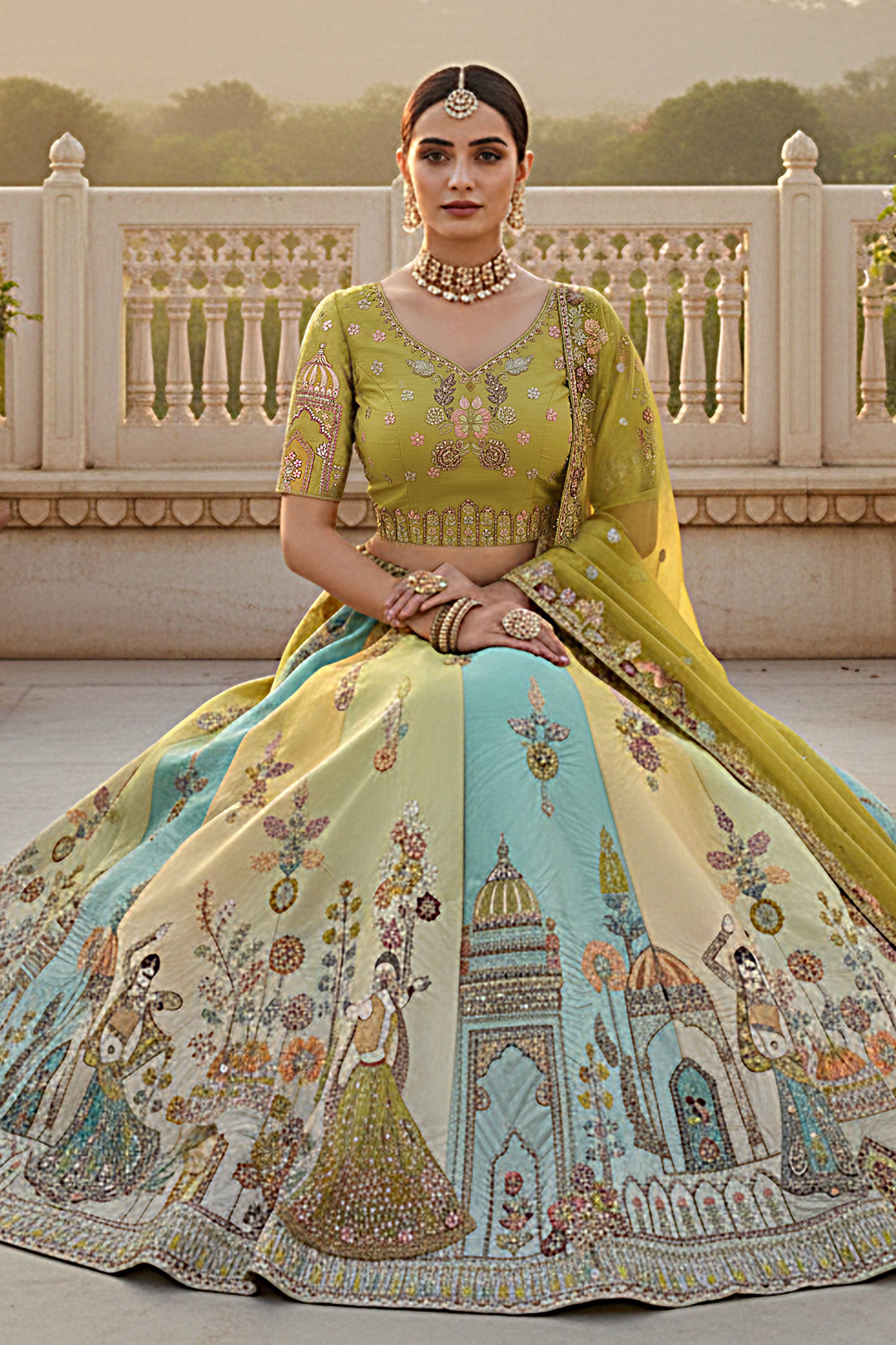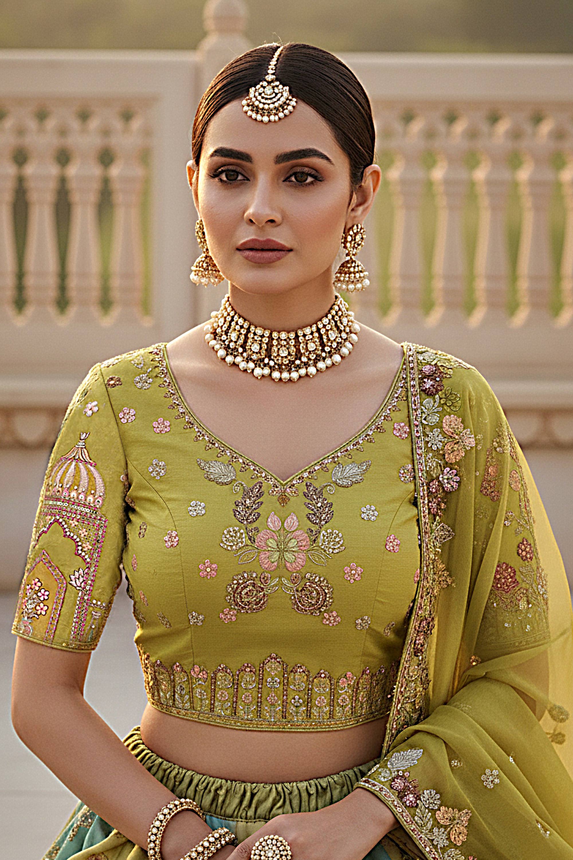 Multi Color Wedding Wear Silk Fabric Embroidered Lehenga Choli
