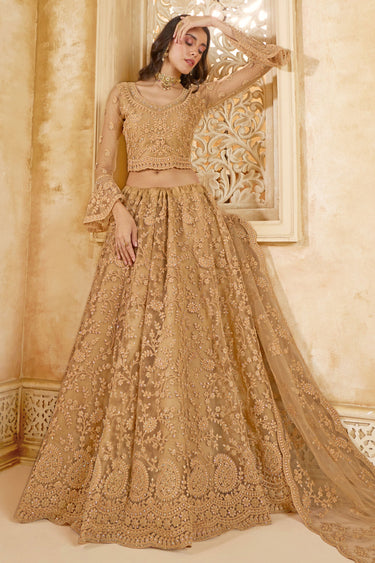 Elevate your bridal attire with our exquisitely designed lehenga choli. This ensemble features a net fabric with silk that enhances its rich texture and appeal. The blouse also combines net and silk for a perfectly coordinated look. Accompanied by a delicate net dupatta, this outfit completes the luxurious look every bride dreams of. Semi-stitched for your convenience, you can tailor it to your exact fit. Join our bridal collection and make your wedding day unforgettable with this stunning piece.