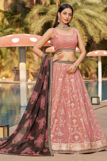 Radiant Sequins Embroidered Peach Color Georgette Fabric Lehenga