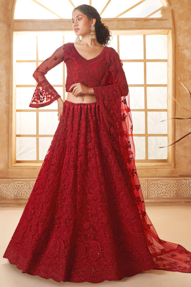 Make your wedding memorable with this stunning Lehenga Choli in beautiful colors. Crafted from soft net, the set includes a lehenga and blouse complemented by a matching dupatta. It features intricate designer thread embroidery and dazzling diamond work. Customizable up to size 42 for the perfect fit. Dry clean only to preserve its intricate work.Please note: The accessories worn by the model are not included. Product color may differ slightly due to lighting or display settings. Ships within 10 working days.