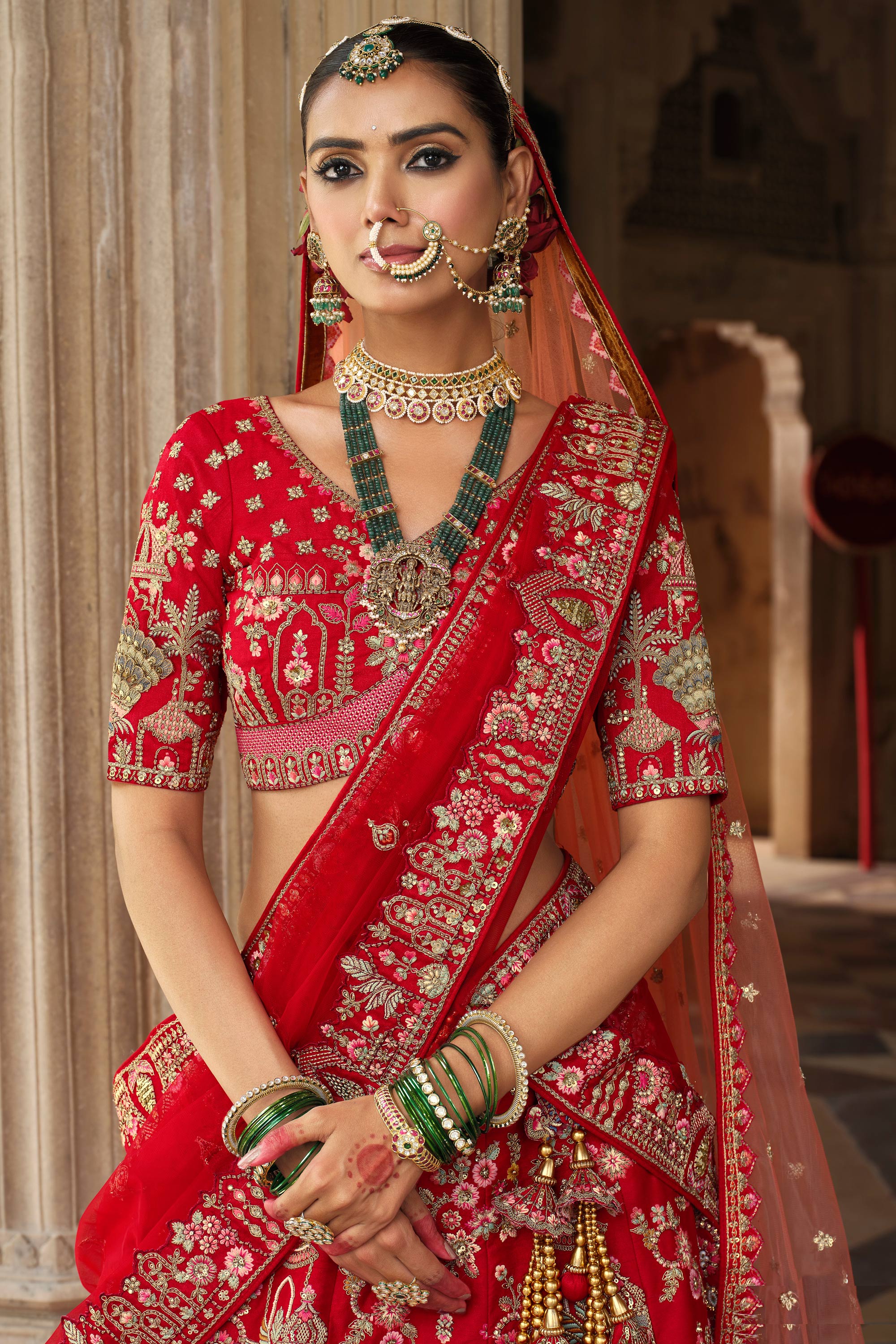 Elevate your wedding look with this stunning Silk Bridal Lehenga Set, complete with a beautifully crafted heavy embroidered blouse. Designed for brides who value tradition with a modern twist, this ensemble combines luxurious silk fabric with intricate detailing for an unmatched appearance. The vibrant colors and exceptional craftsmanship make this lehenga set ideal for weddings, receptions, or grand events. Its premium fabric ensures comfort throughout the day while enhancing your elegance. Transform your bridal wardrobe with this timeless creation that balances tradition and sophistication.