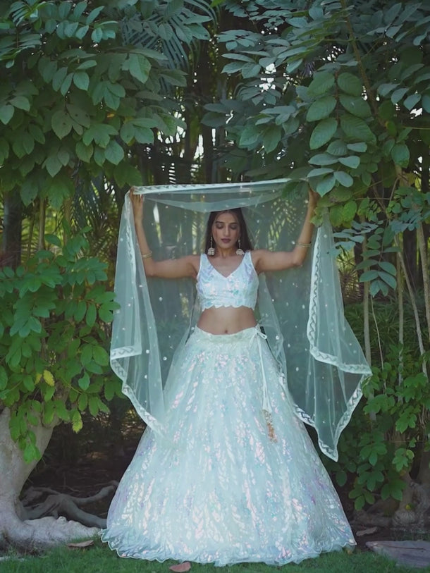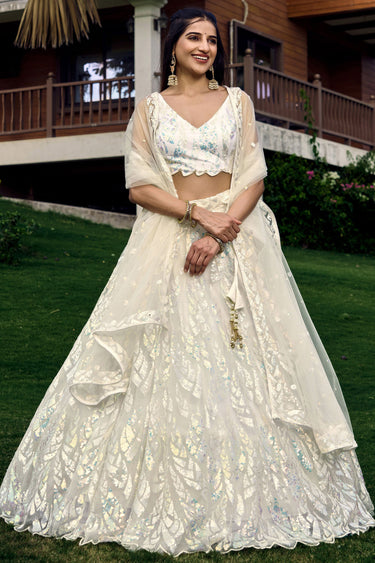 Stylish White Color Net Fabric Sequins Work Lehenga