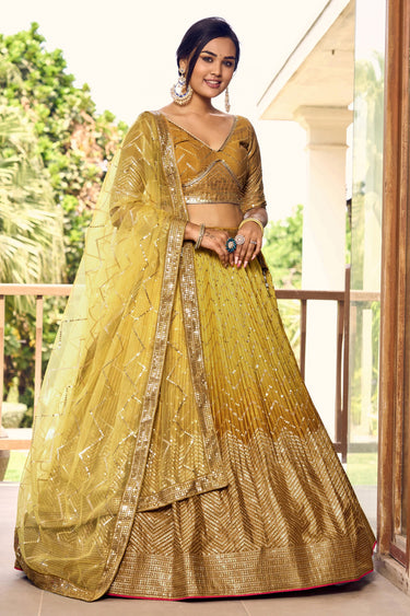Yellow Chinon Fabric Lovely Sangeet Wear Lehenga with Sequins Work