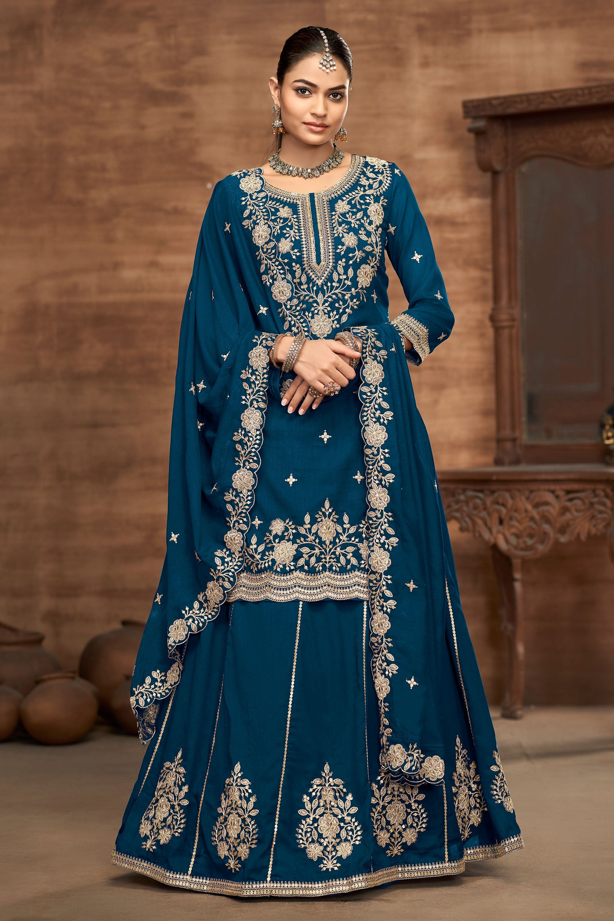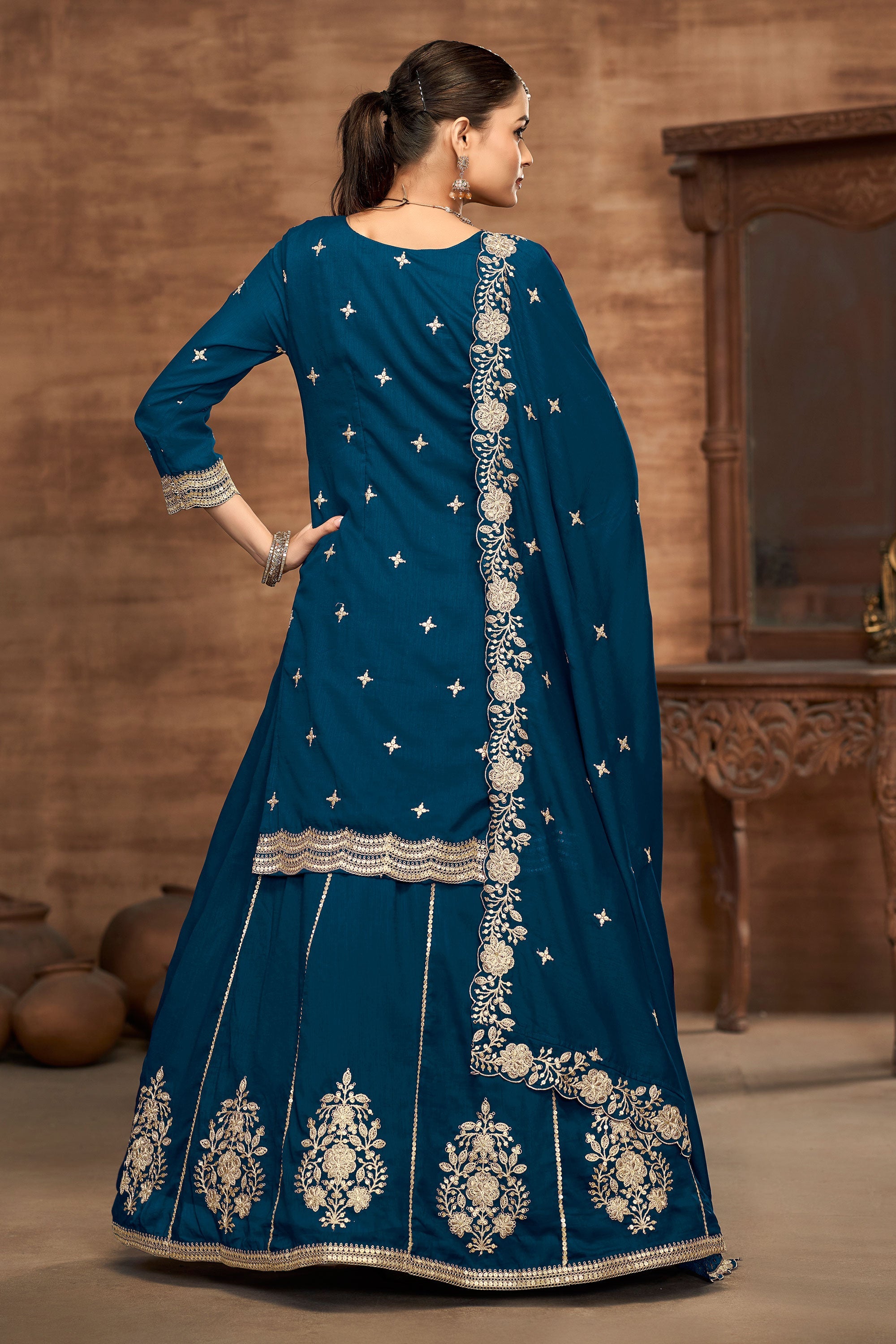 Teal Art Silk Sangeet Wear Readymade Sharara Style Lehenga