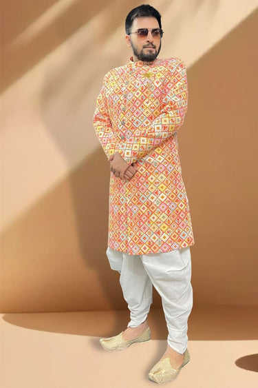 Dusky Orange Color Silk Fabric Peshawari Style Indo Western Set