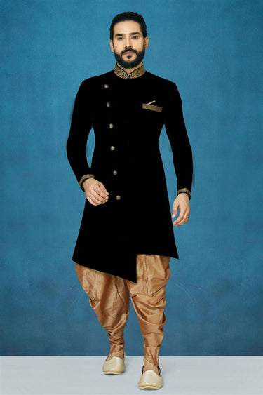 Art Silk Fabric Function Wear Black Color Dashing Dhoti Style Indo Western