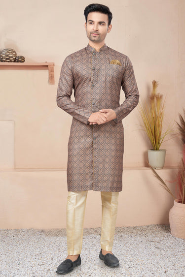 Beautiful Printed Brown Color Readymade Indo Western For Men In Cotton Fabric