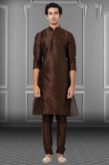 Brown Engaging Dhupion Fabric Festive Wear Kurta Pyjama For Men