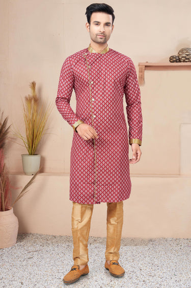 Cotton Fabric Printed Maroon Color Readymade Men Stylish Indo Western
